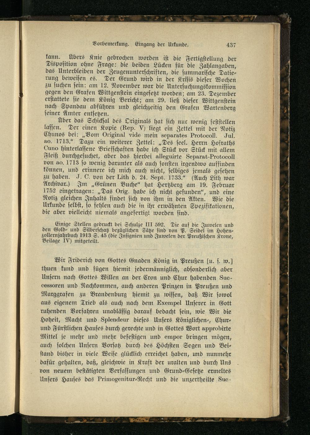 Beilage Nr. 8. Das Fideicommißstatut König Friedrichs I.