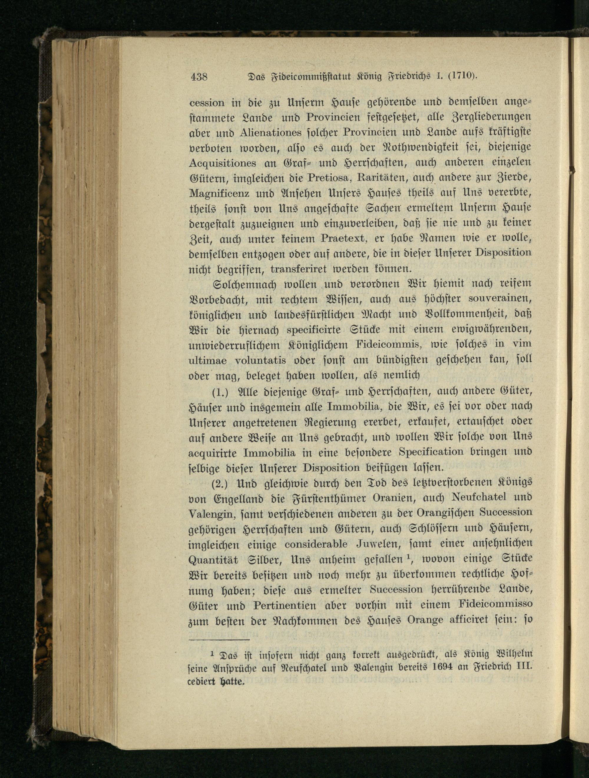 Beilage Nr. 8. Das Fideicommißstatut König Friedrichs I.