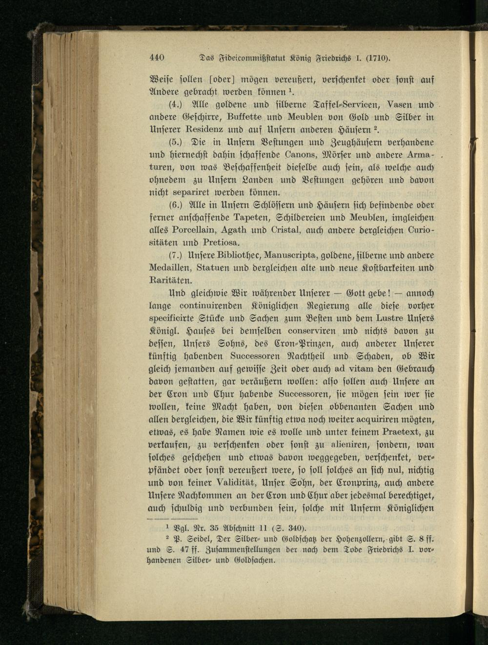 Beilage Nr. 8. Das Fideicommißstatut König Friedrichs I.