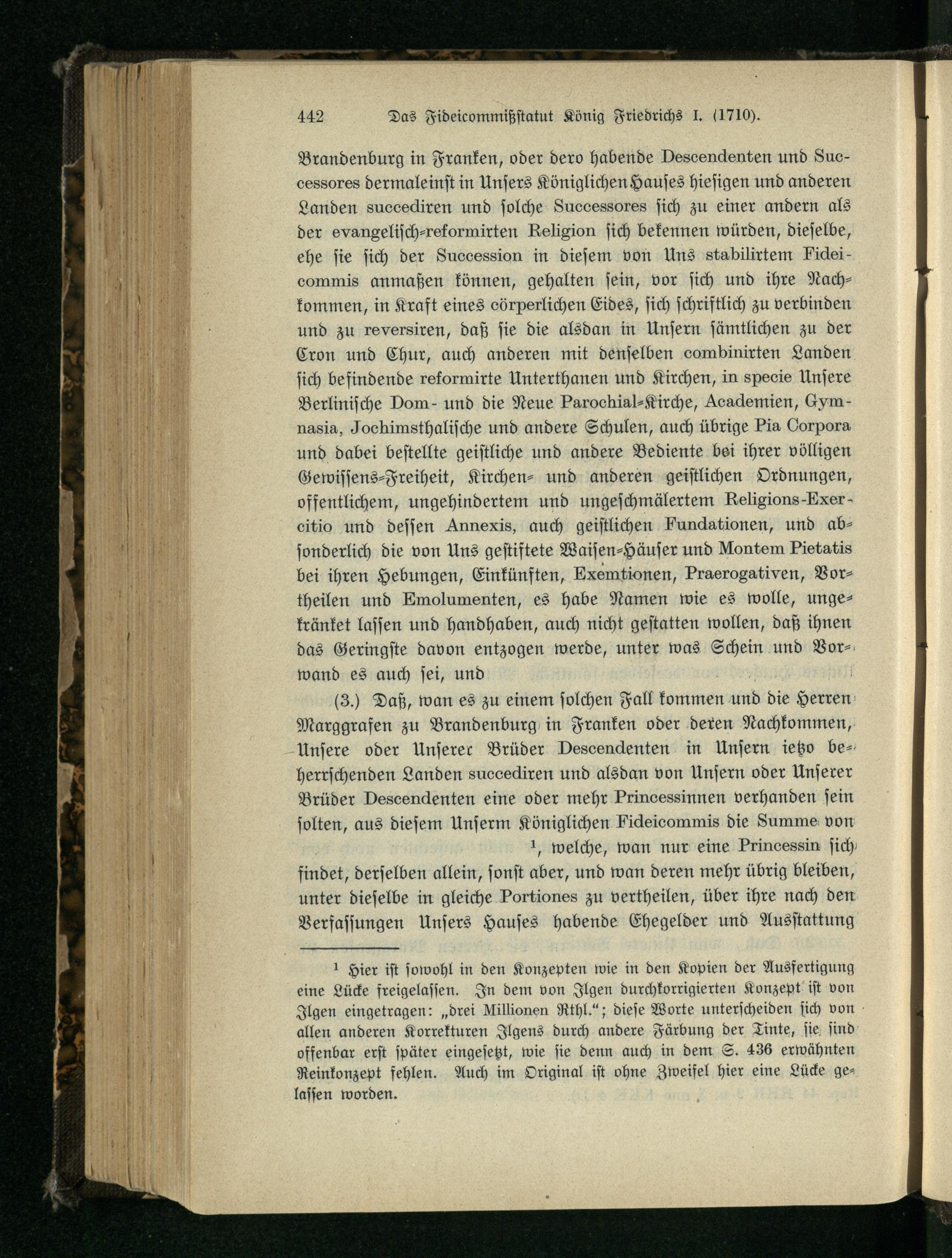 Beilage Nr. 8. Das Fideicommißstatut König Friedrichs I.