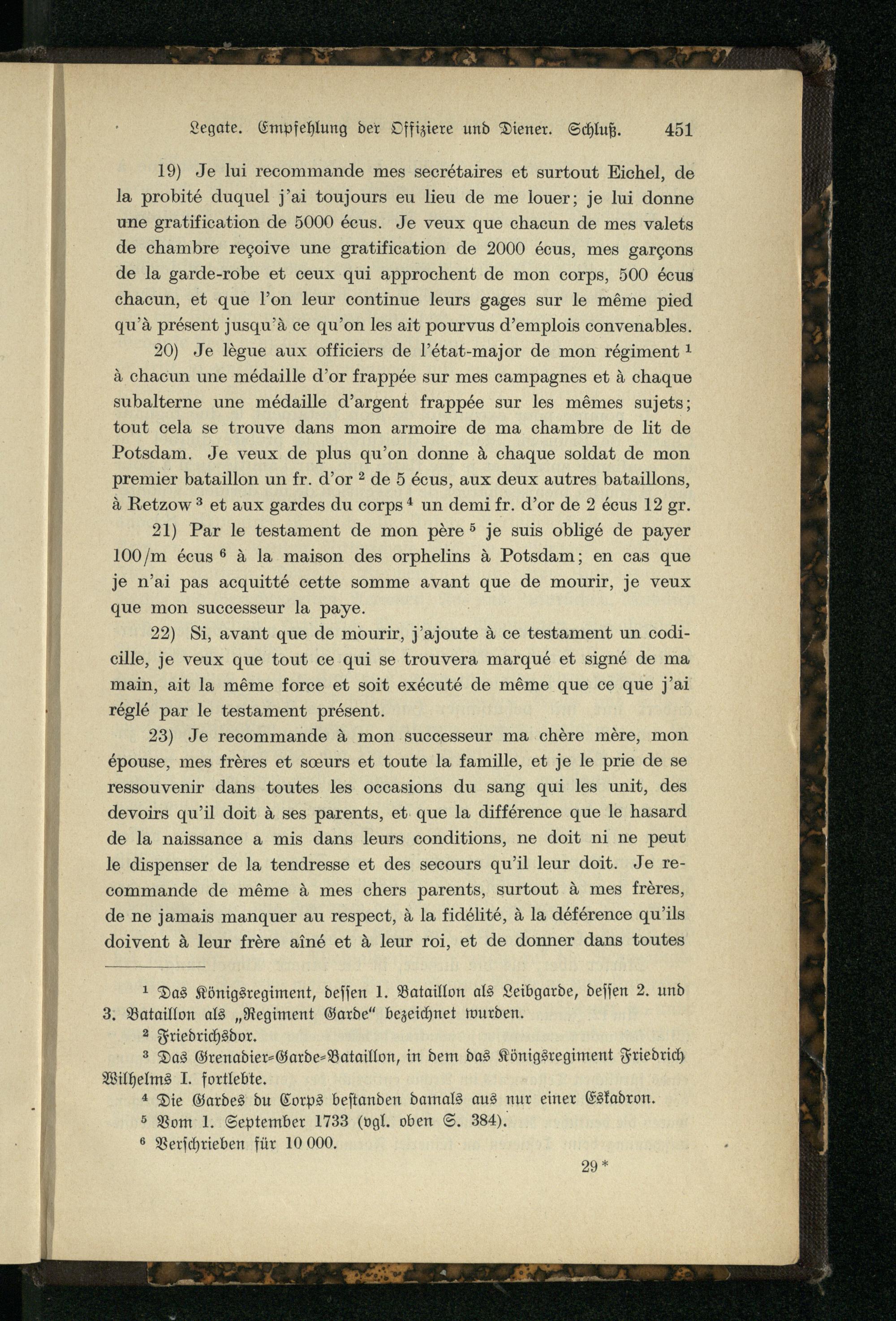 Beilage Nr. 9. Das erste Testament König Friedrichs des Großen.