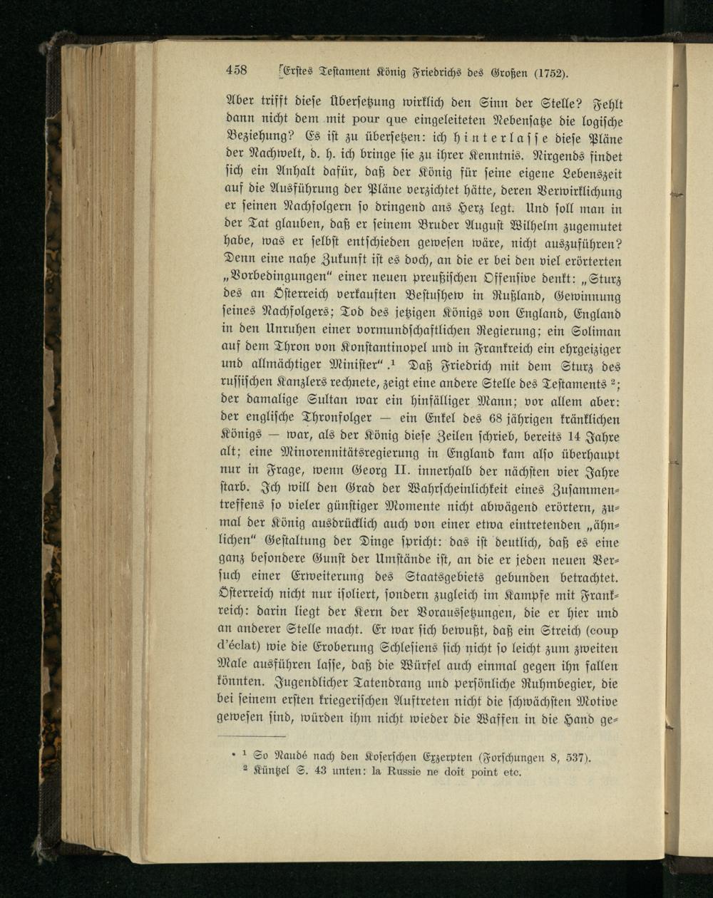 Beilage Nr. 9. Das erste Testament König Friedrichs des Großen.