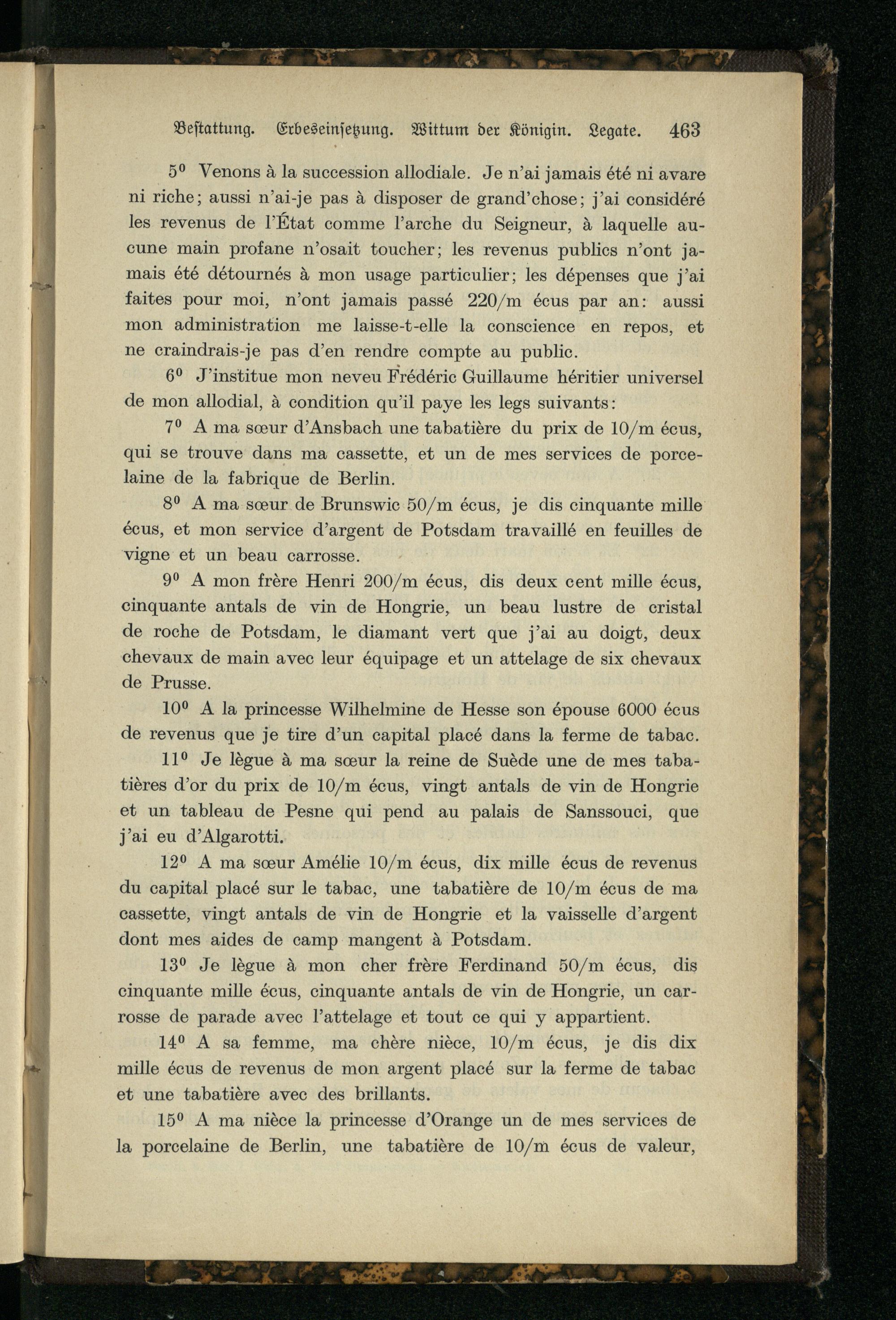Beilage Nr. 10. Das zweite Testament König Friedrichs des Großen.