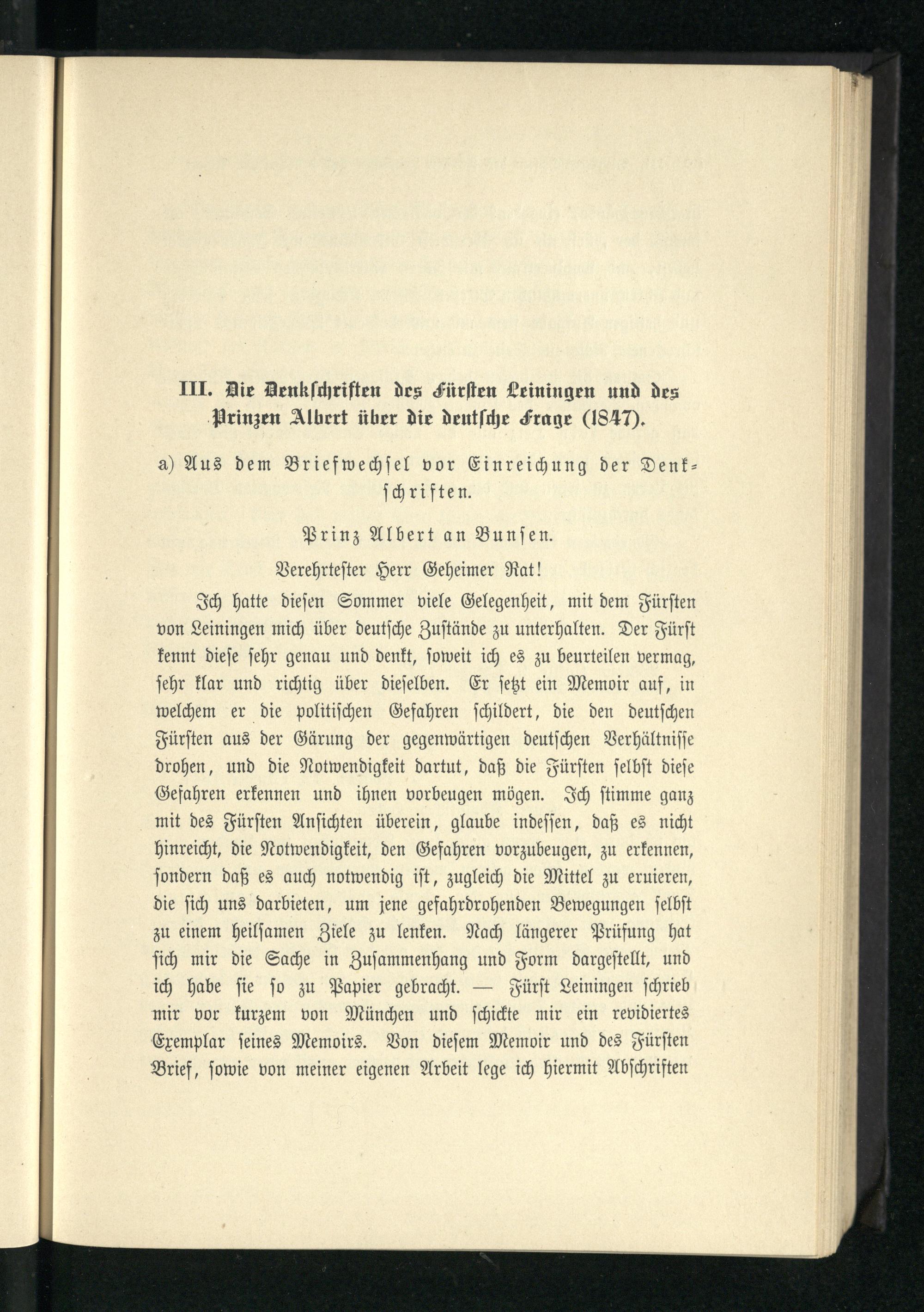 III. Die Denkschriften des Fürsten Leiningen und des Prinzen Albert über die deutsche...