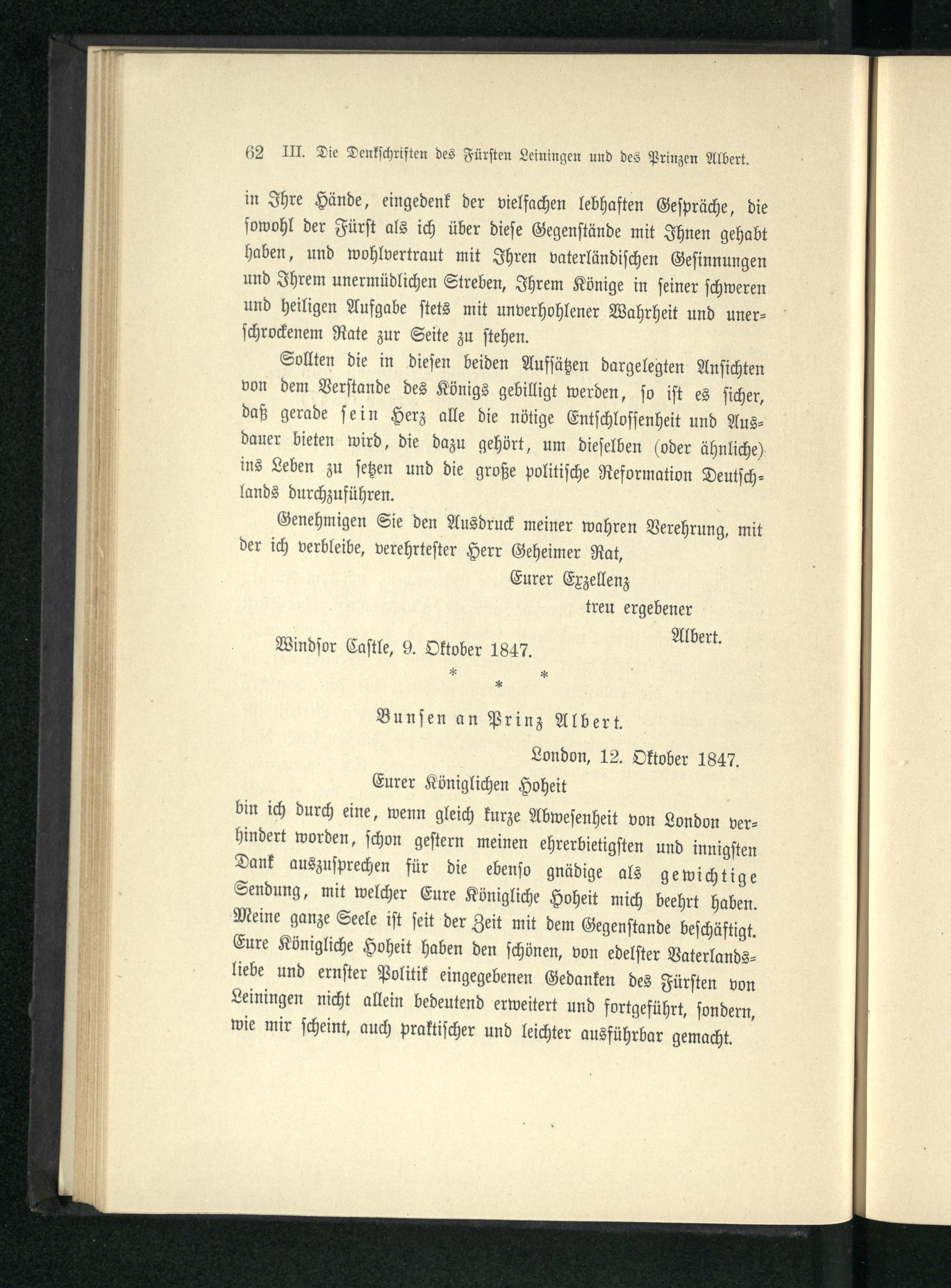 III. Die Denkschriften des Fürsten Leiningen und des Prinzen Albert über die deutsche Frage (1847).