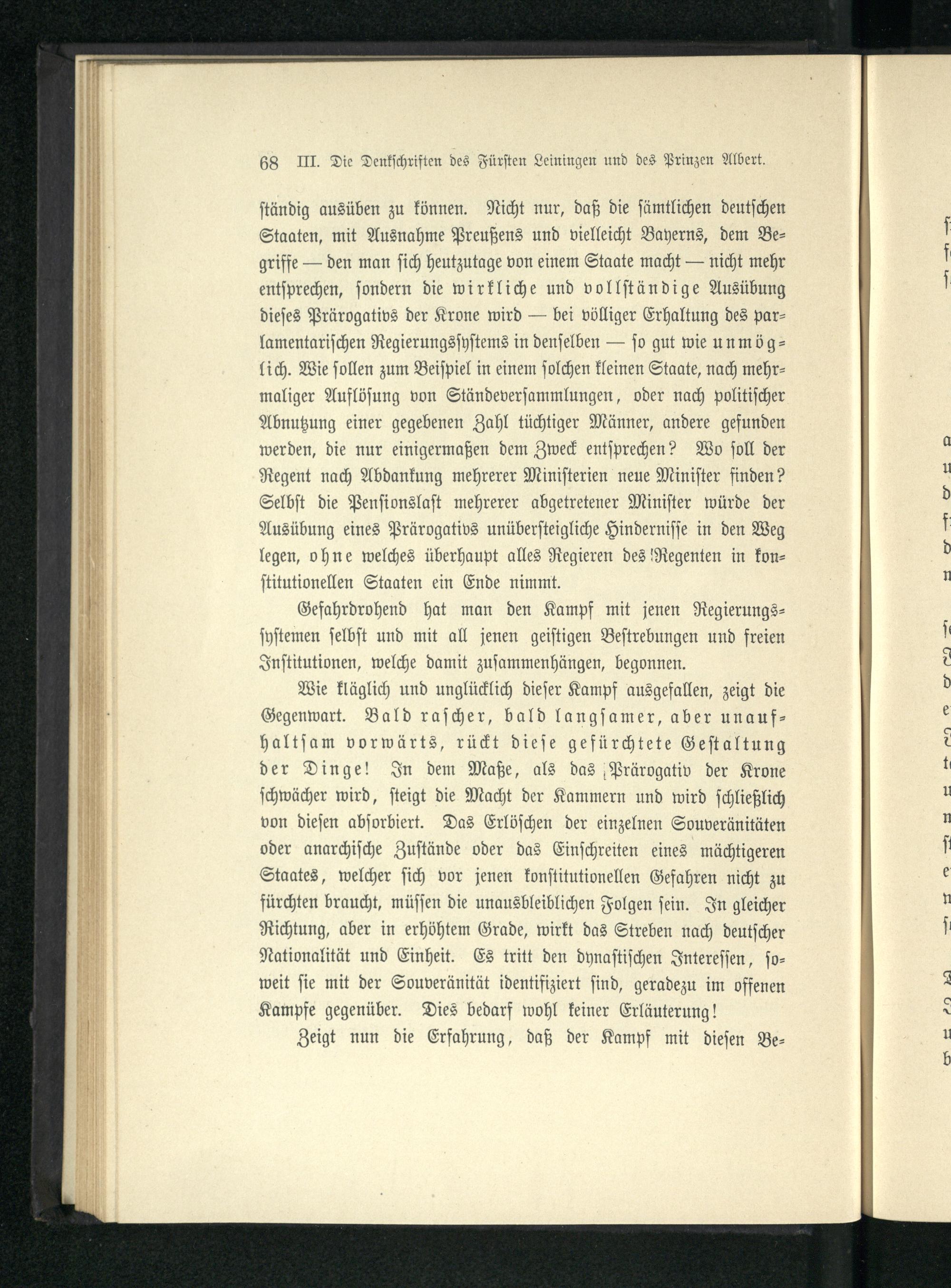 III. Die Denkschriften des Fürsten Leiningen und des Prinzen Albert über die deutsche...