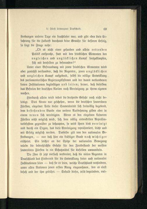 III. Die Denkschriften des Fürsten Leiningen und des Prinzen Albert über die deutsche...