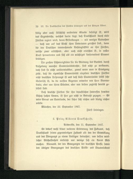 III. Die Denkschriften des Fürsten Leiningen und des Prinzen Albert über die deutsche...