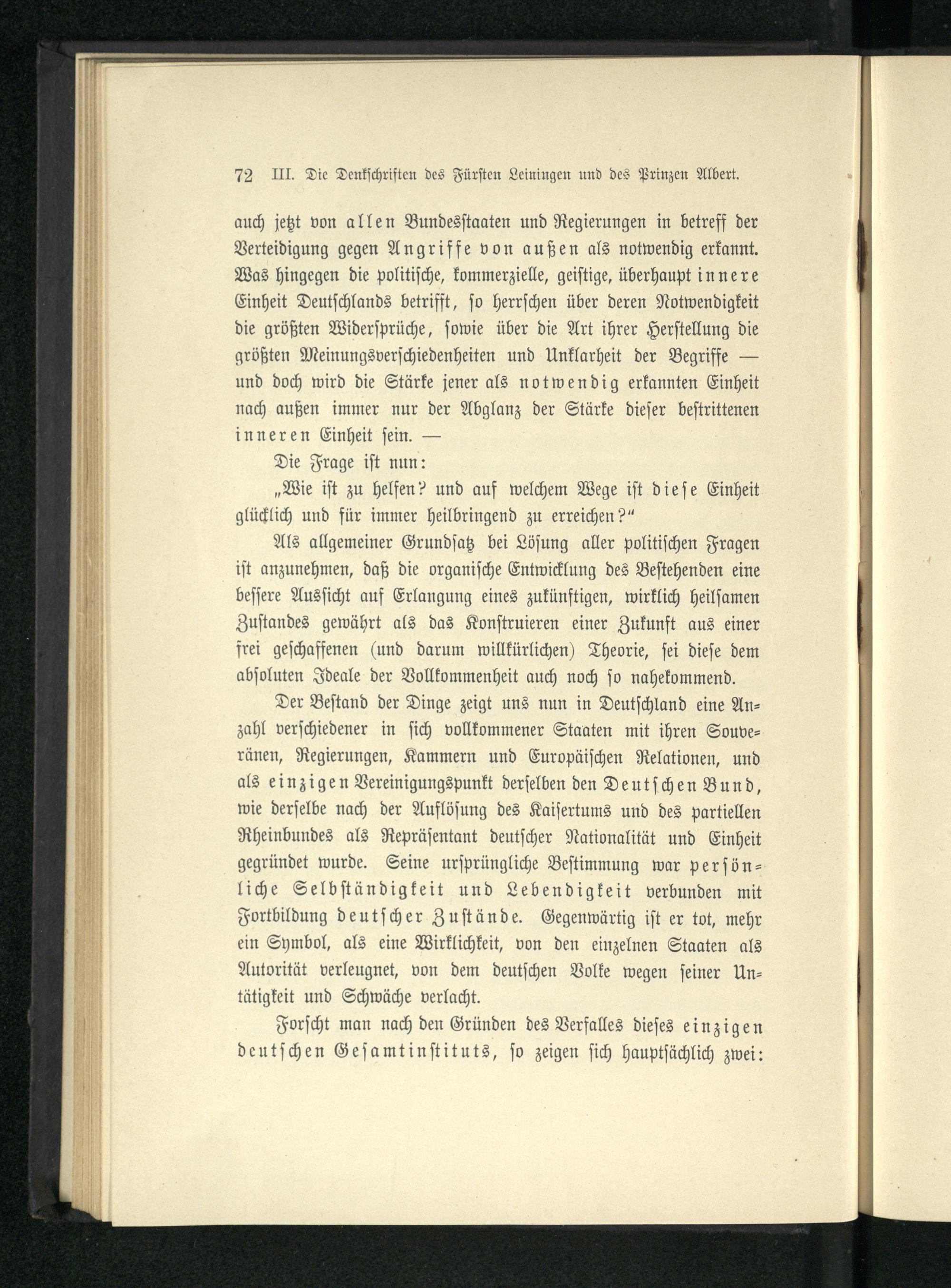 III. Die Denkschriften des Fürsten Leiningen und des Prinzen Albert über die deutsche...
