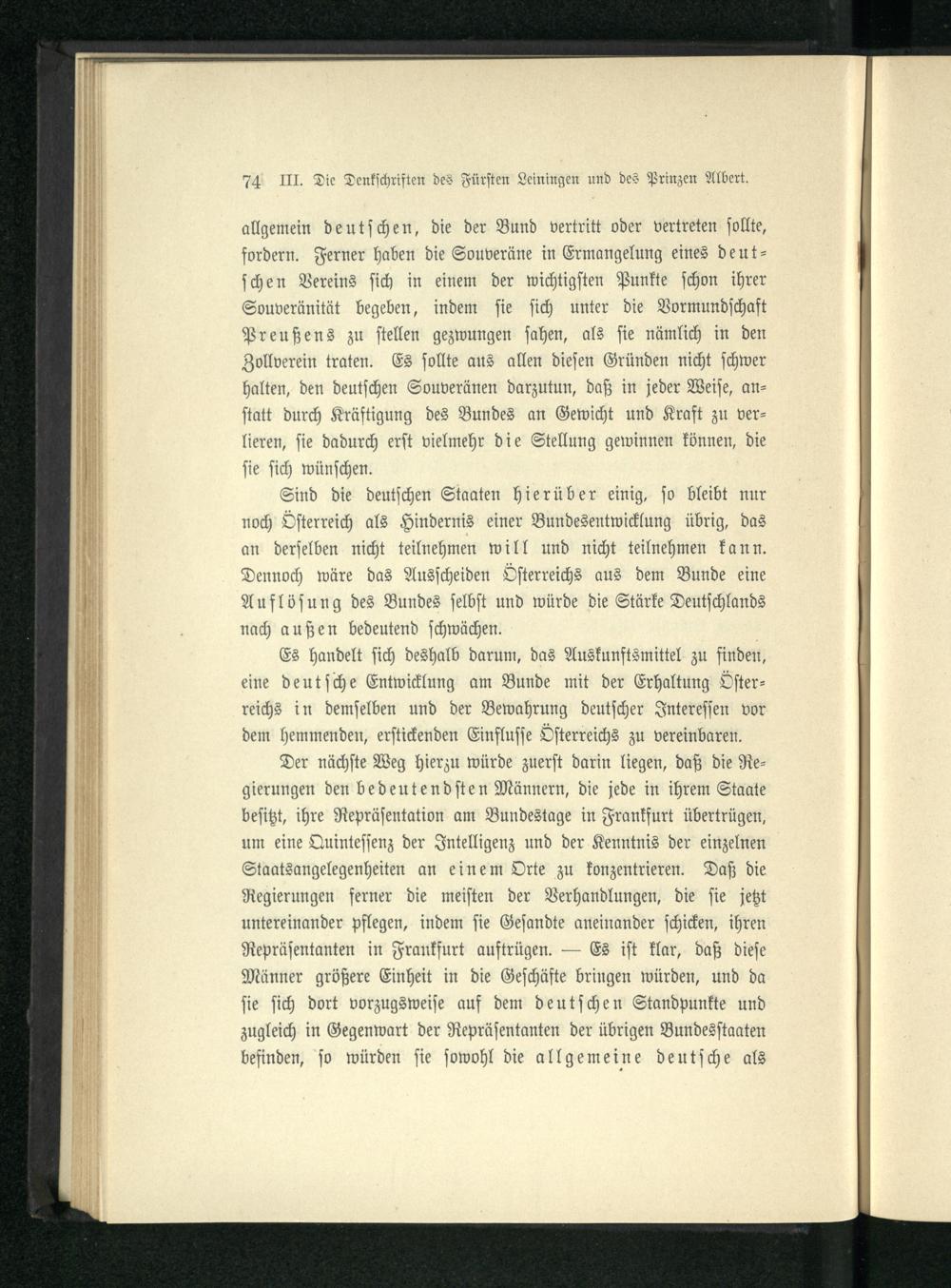 III. Die Denkschriften des Fürsten Leiningen und des Prinzen Albert über die deutsche...