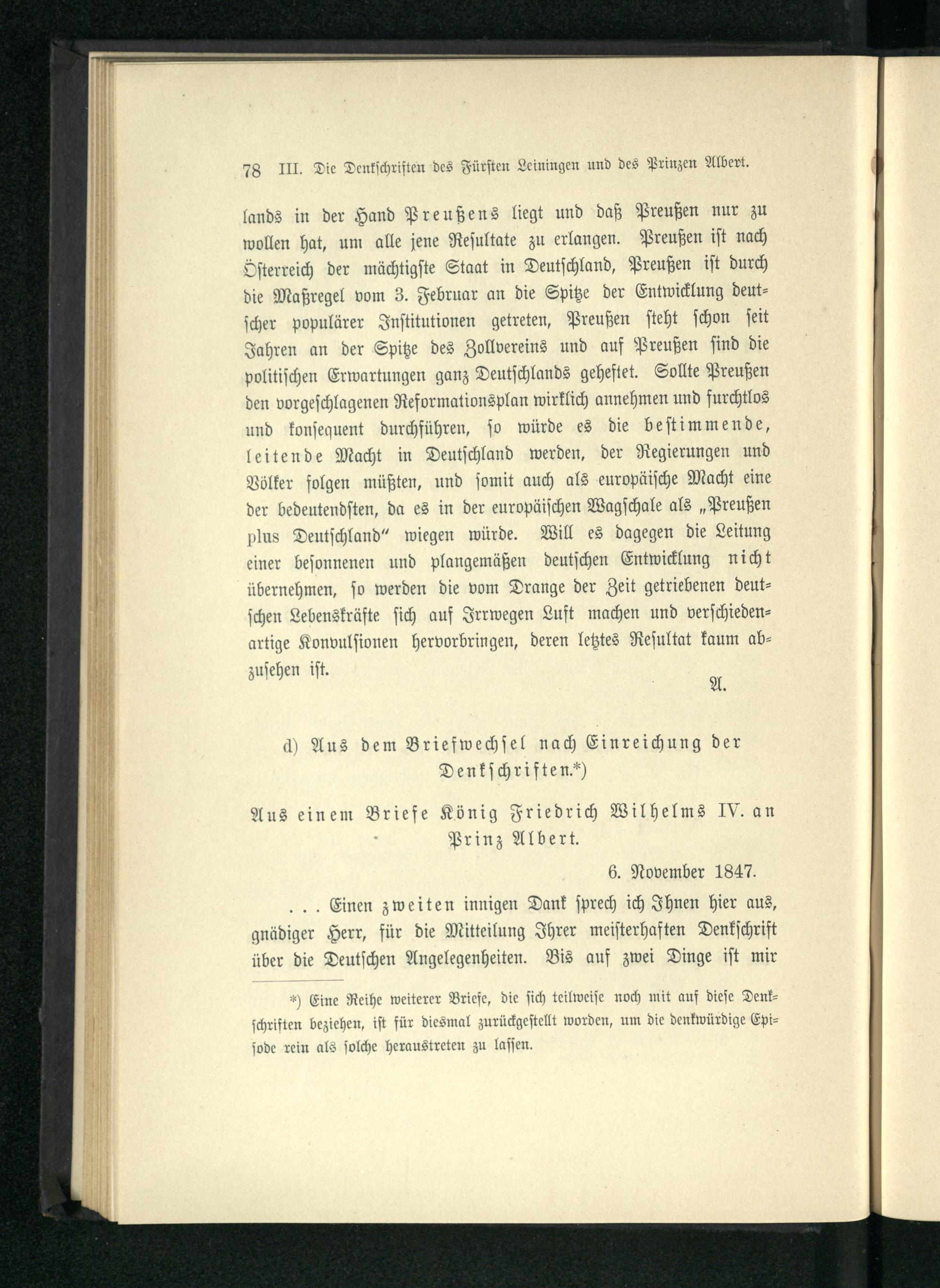 III. Die Denkschriften des Fürsten Leiningen und des Prinzen Albert über die deutsche...