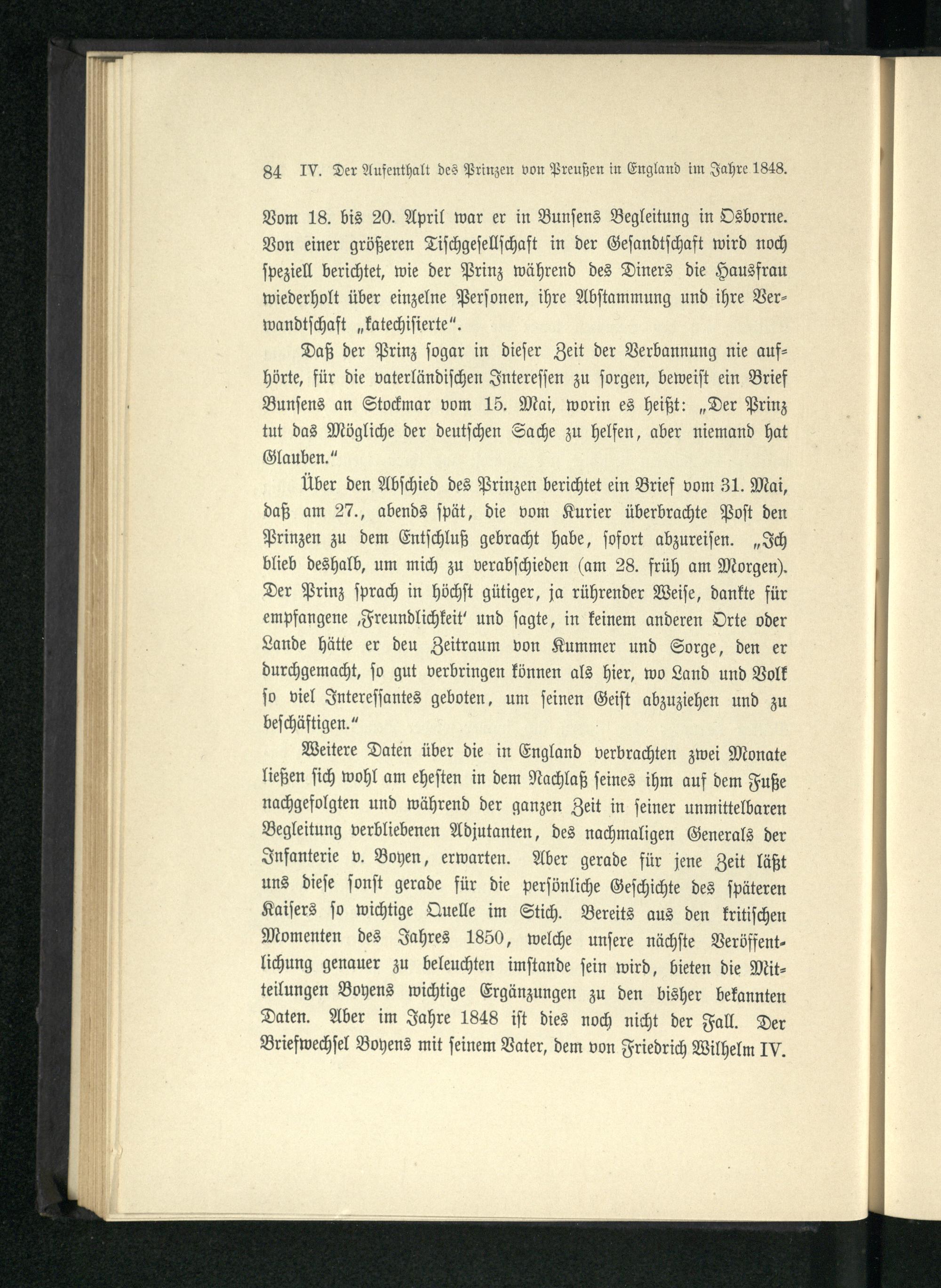 IV. Der Aufenthalt des Prinzen von Preußen in England im Jahre 1848.