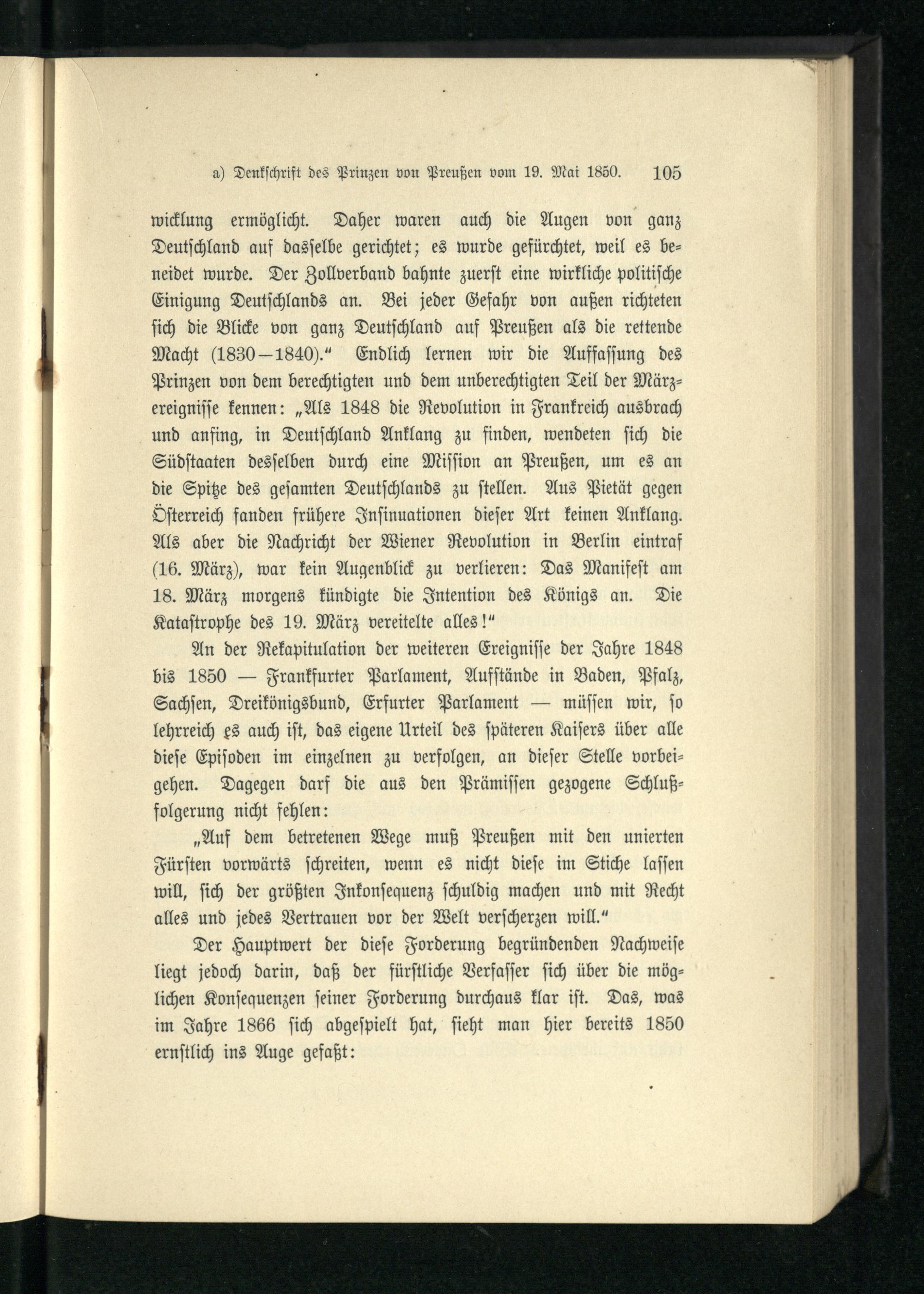 V. Die aktive Teilnahme des Prinzen von Preußen an der deutschen Politik des Jahres...