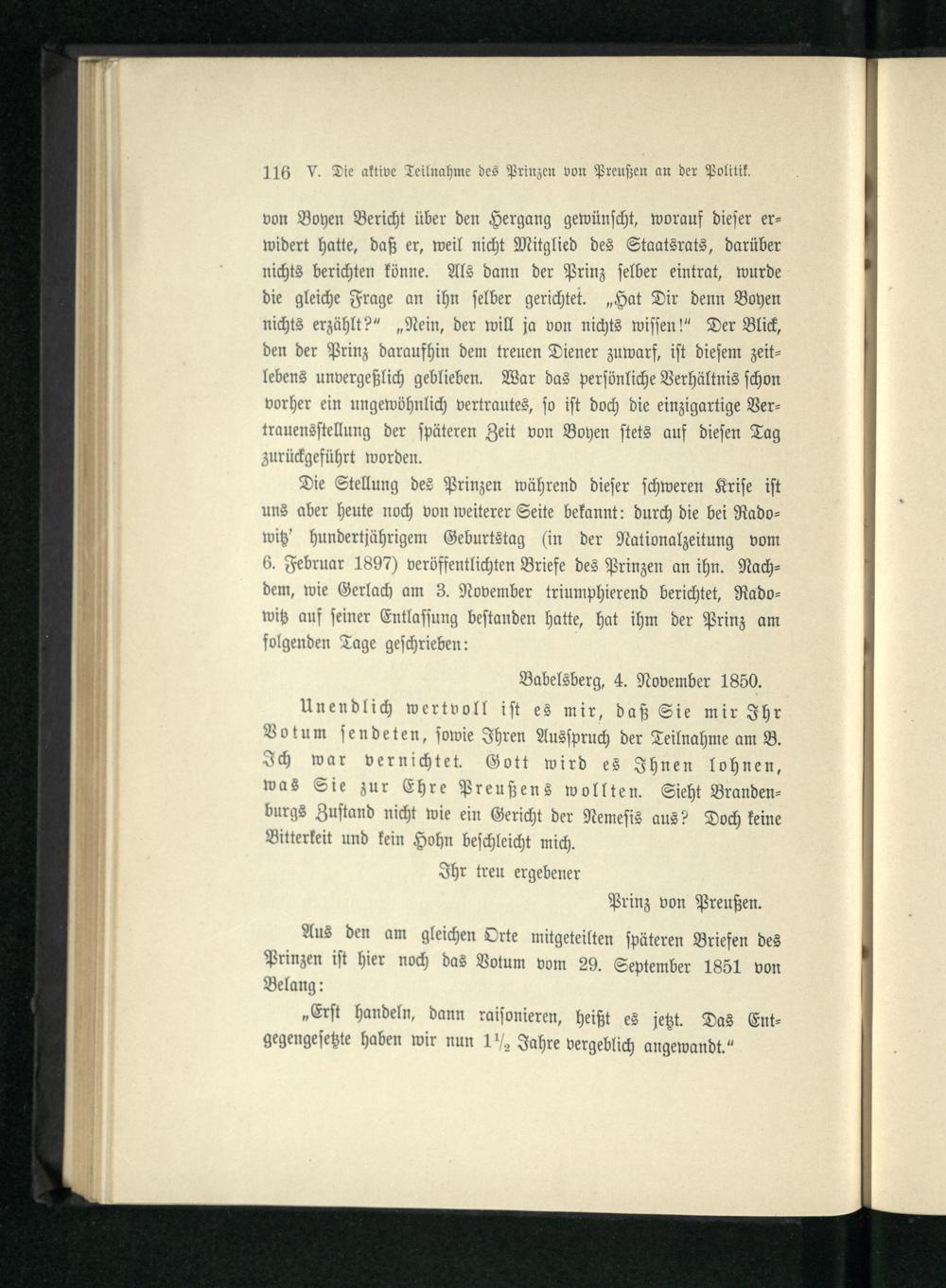 V. Die aktive Teilnahme des Prinzen von Preußen an der deutschen Politik des Jahres 1850.