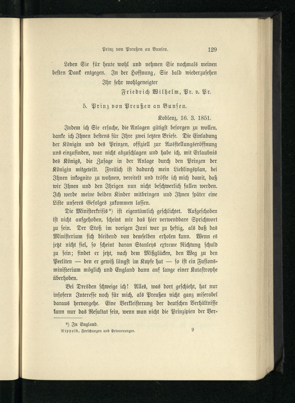 VII. Briefwechsel zwischen Berlin, Koblenz und London vom Jahre 1851.