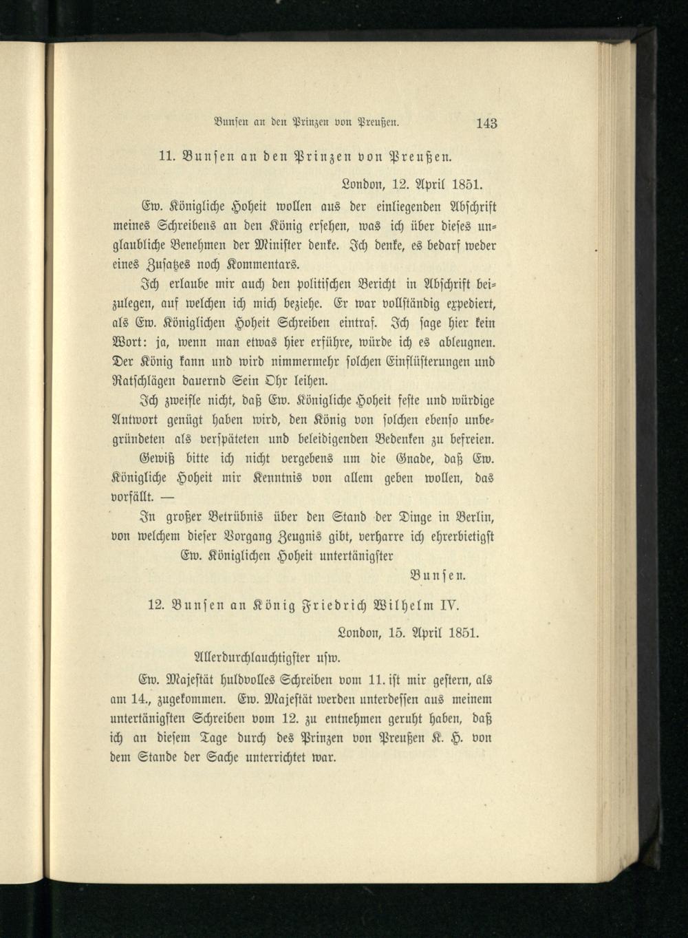VII. Briefwechsel zwischen Berlin, Koblenz und London vom Jahre 1851.