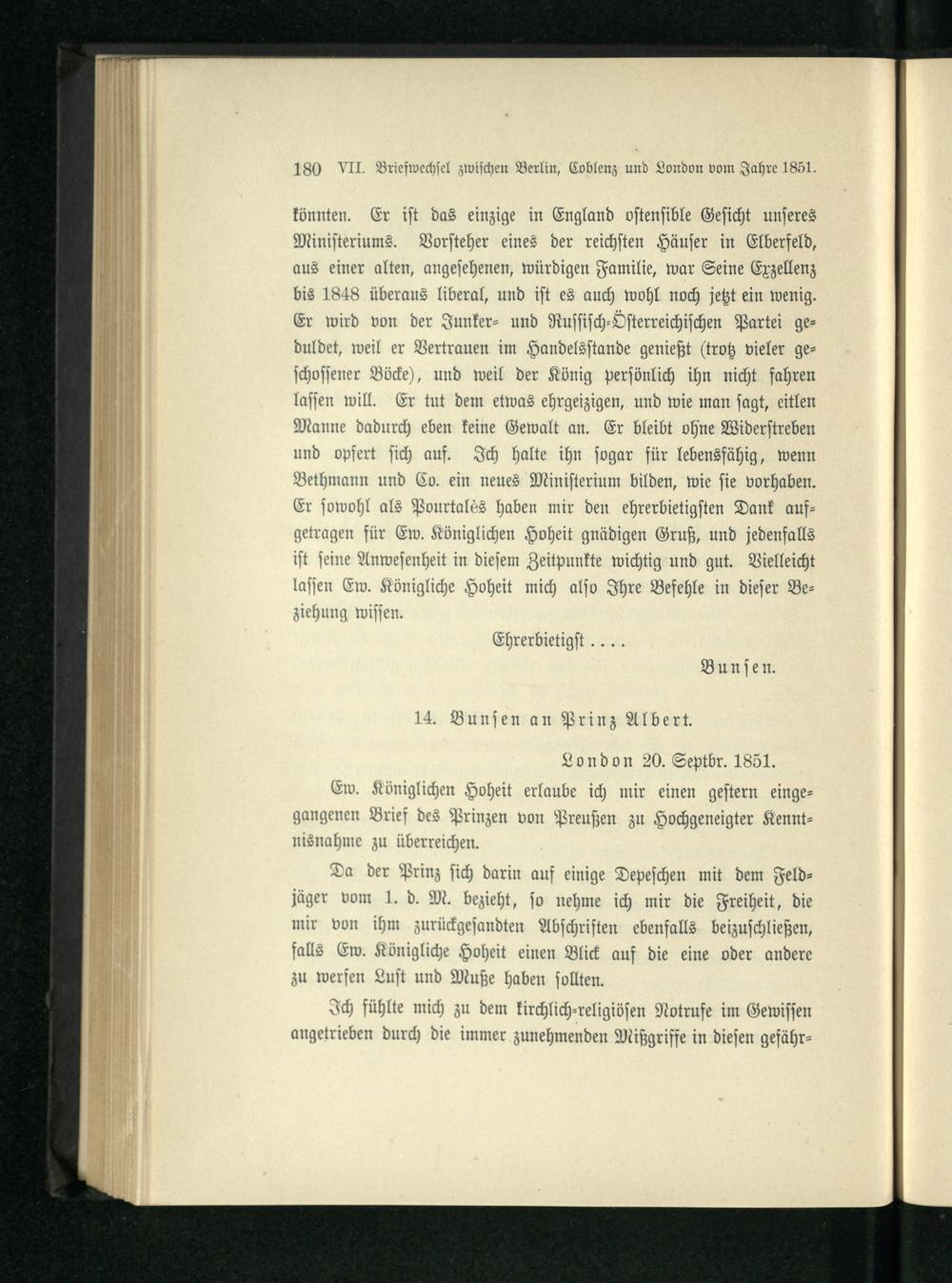 VII. Briefwechsel zwischen Berlin, Koblenz und London vom Jahre 1851.