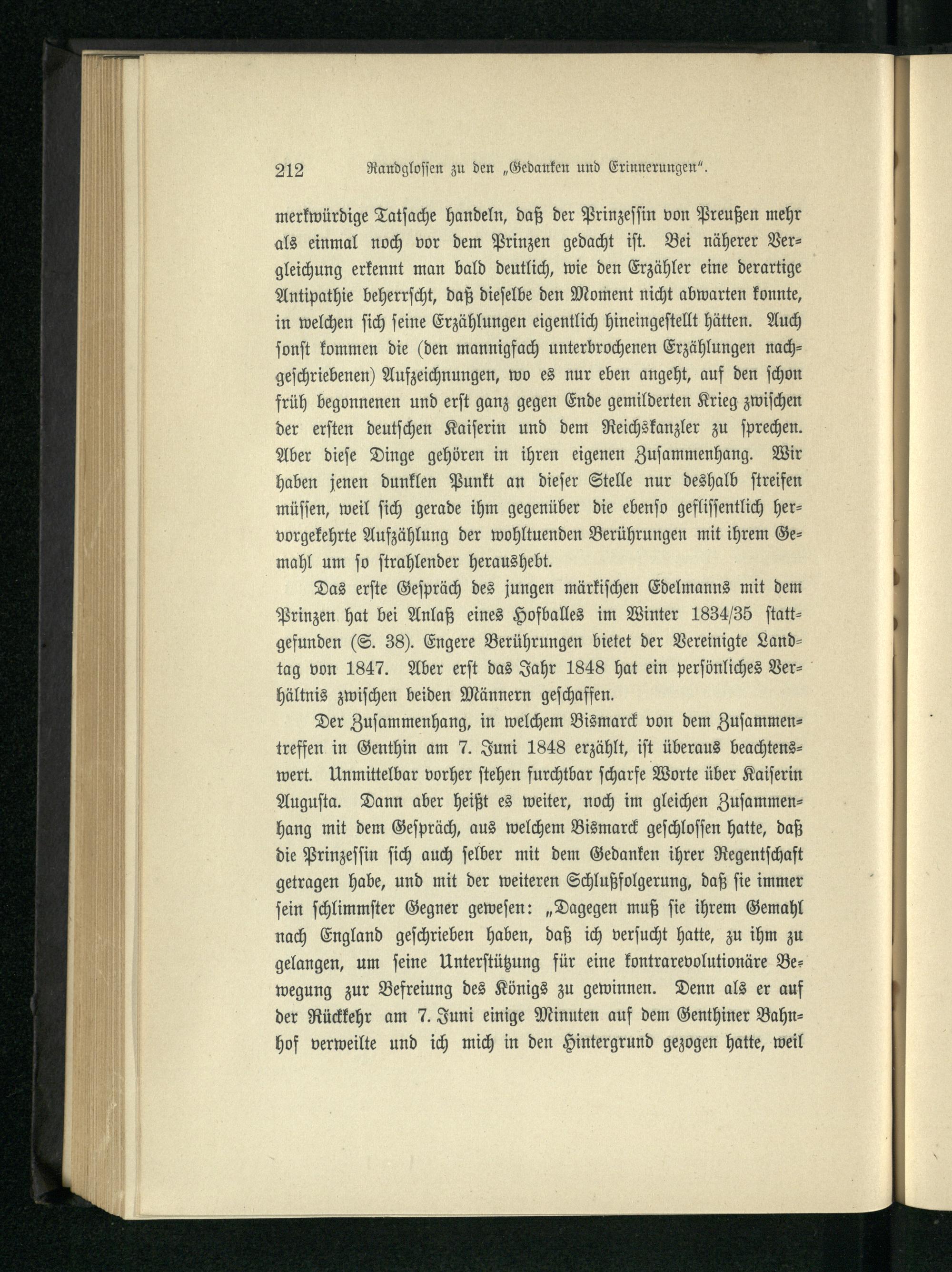 B. Randglossen zu Fürst Bismarcks „Gedanken und Erinnerungen“