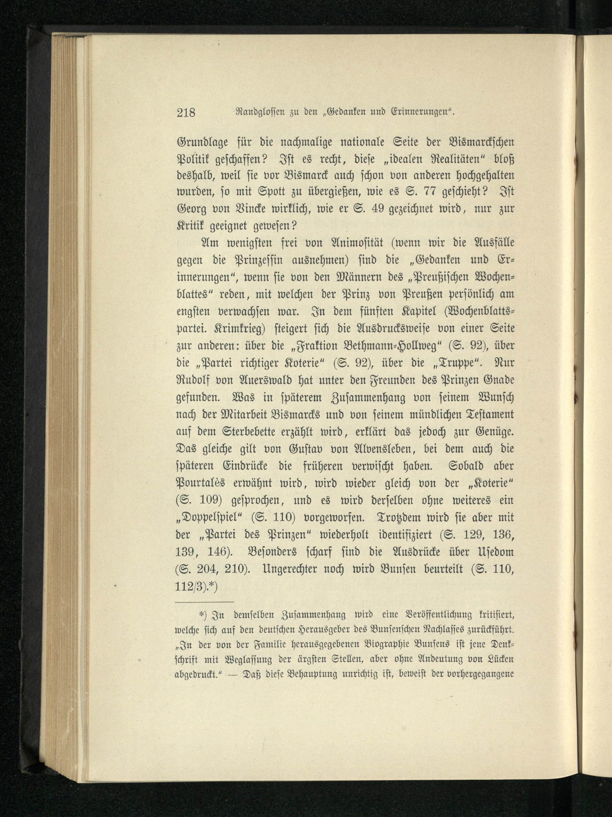 B. Randglossen zu Fürst Bismarcks „Gedanken und Erinnerungen“
