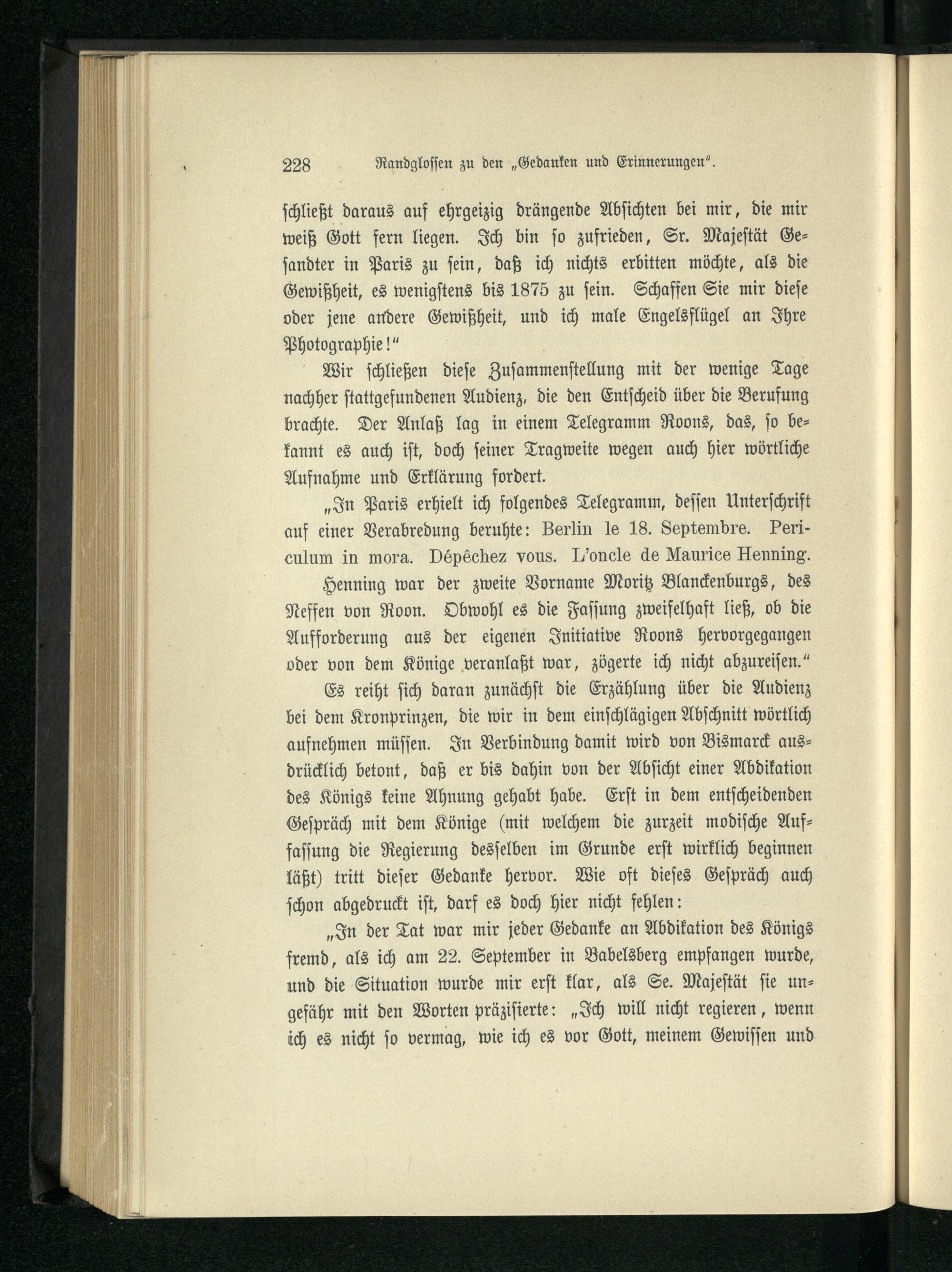 B. Randglossen zu Fürst Bismarcks „Gedanken und Erinnerungen“