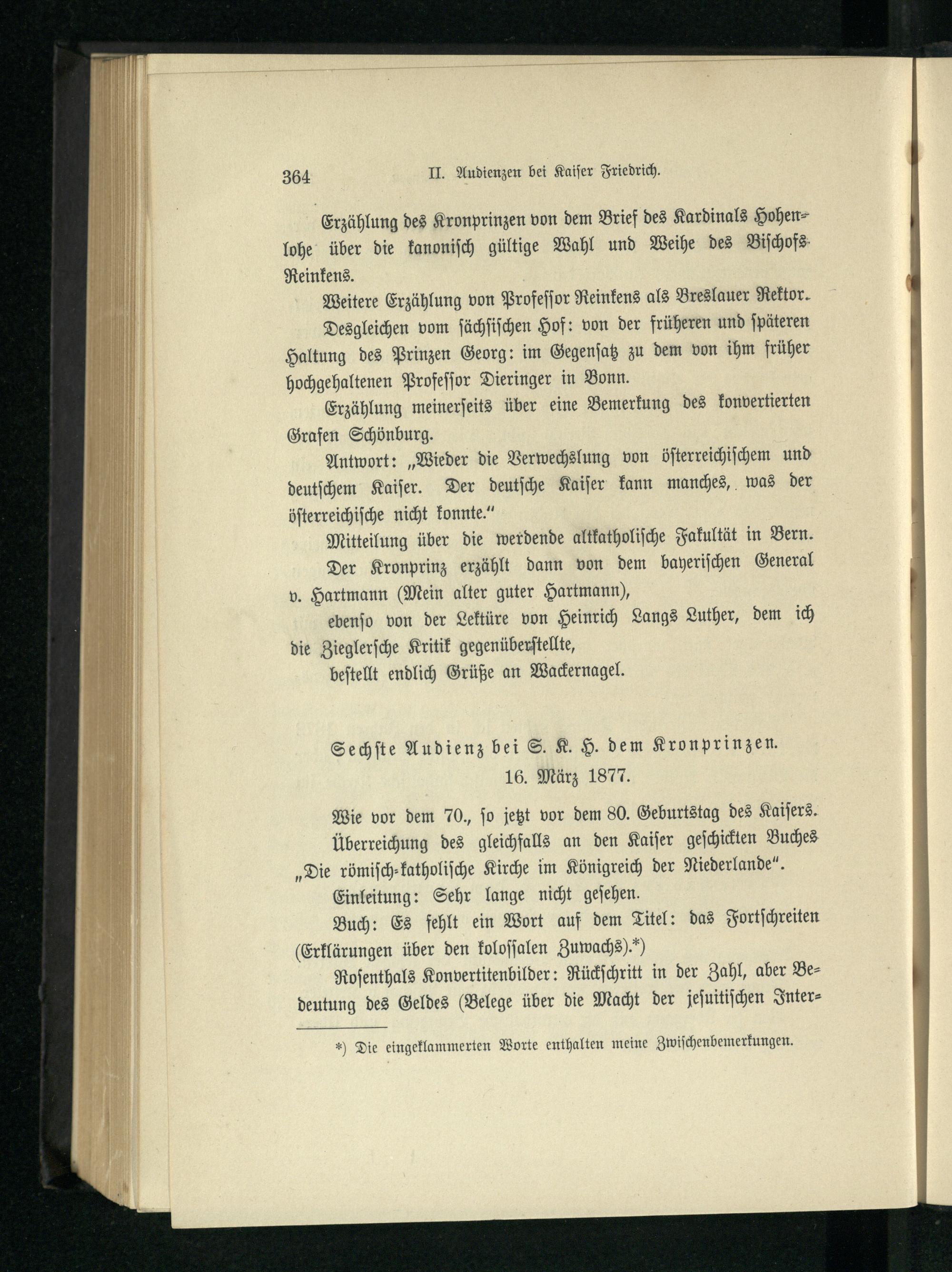 II. Audienzen bei Kaiser Friedrich.