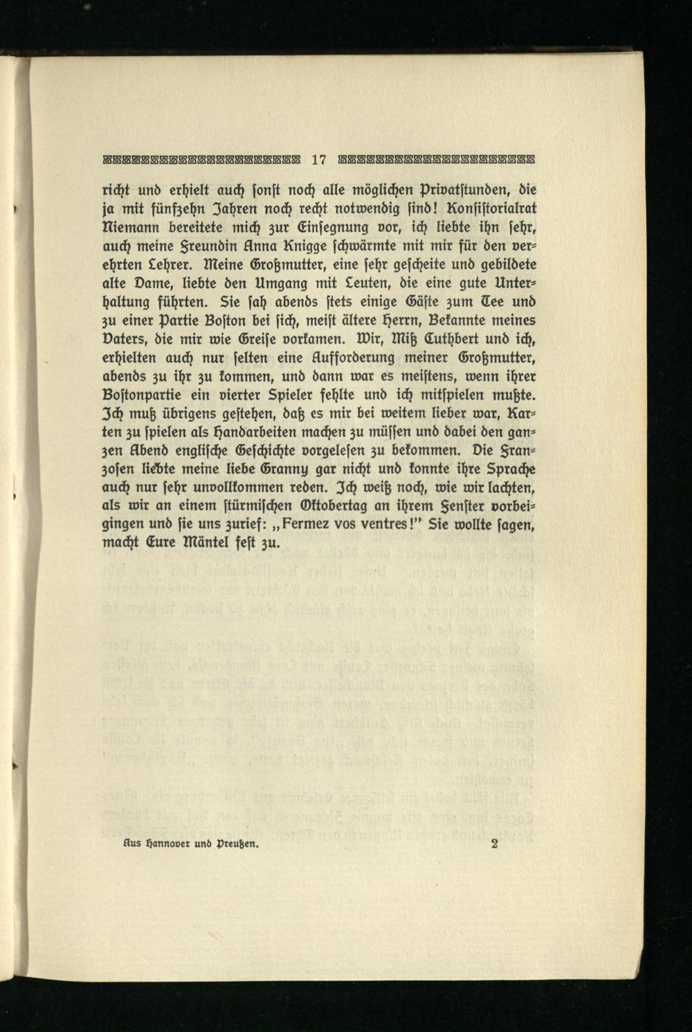 Aus Hannover und Preußen : Lebenserinnerungen aus einem halben Jahrhundert / von Julie von Albedyll-Alten. Hrsg. und mit Anm. vers. von Richard Boschan