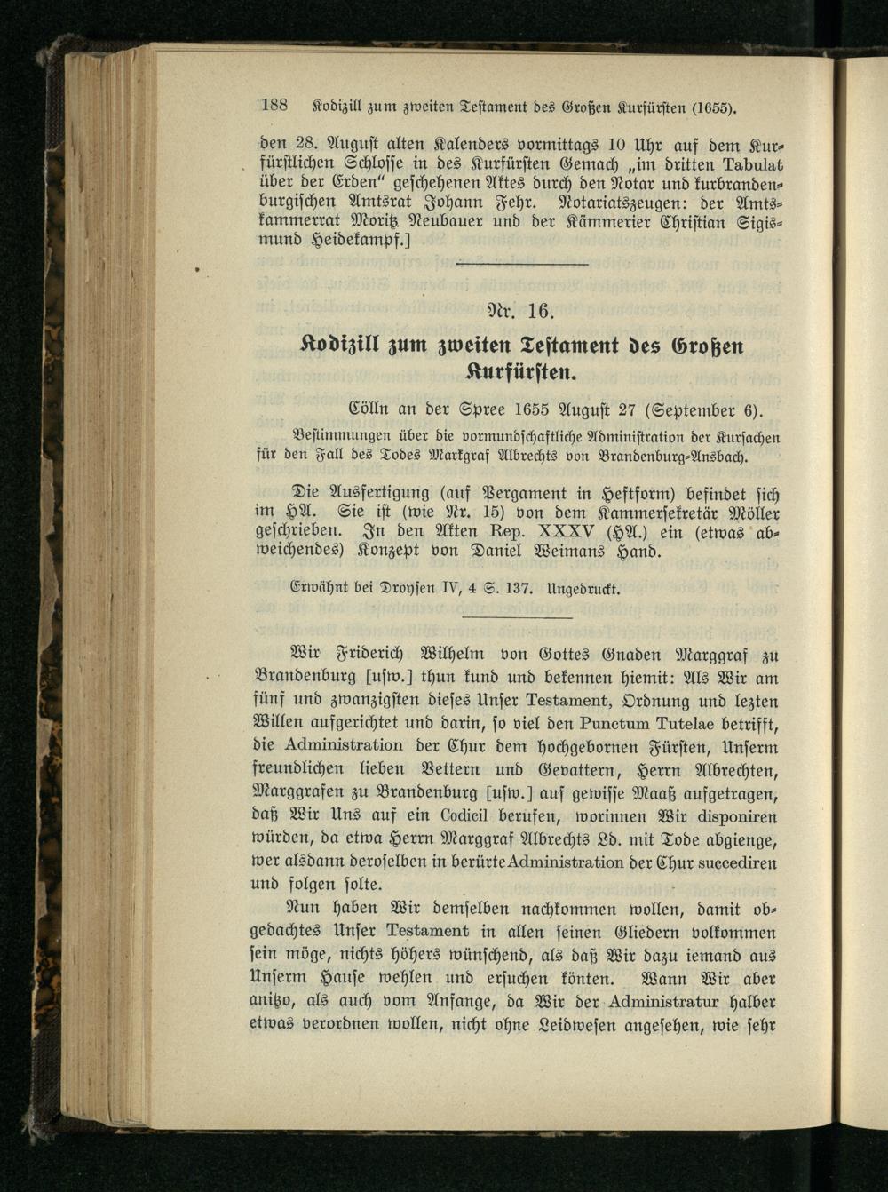 Nr. 16. Kodizill zum zweiten Testament des Großen Kurfürsten.