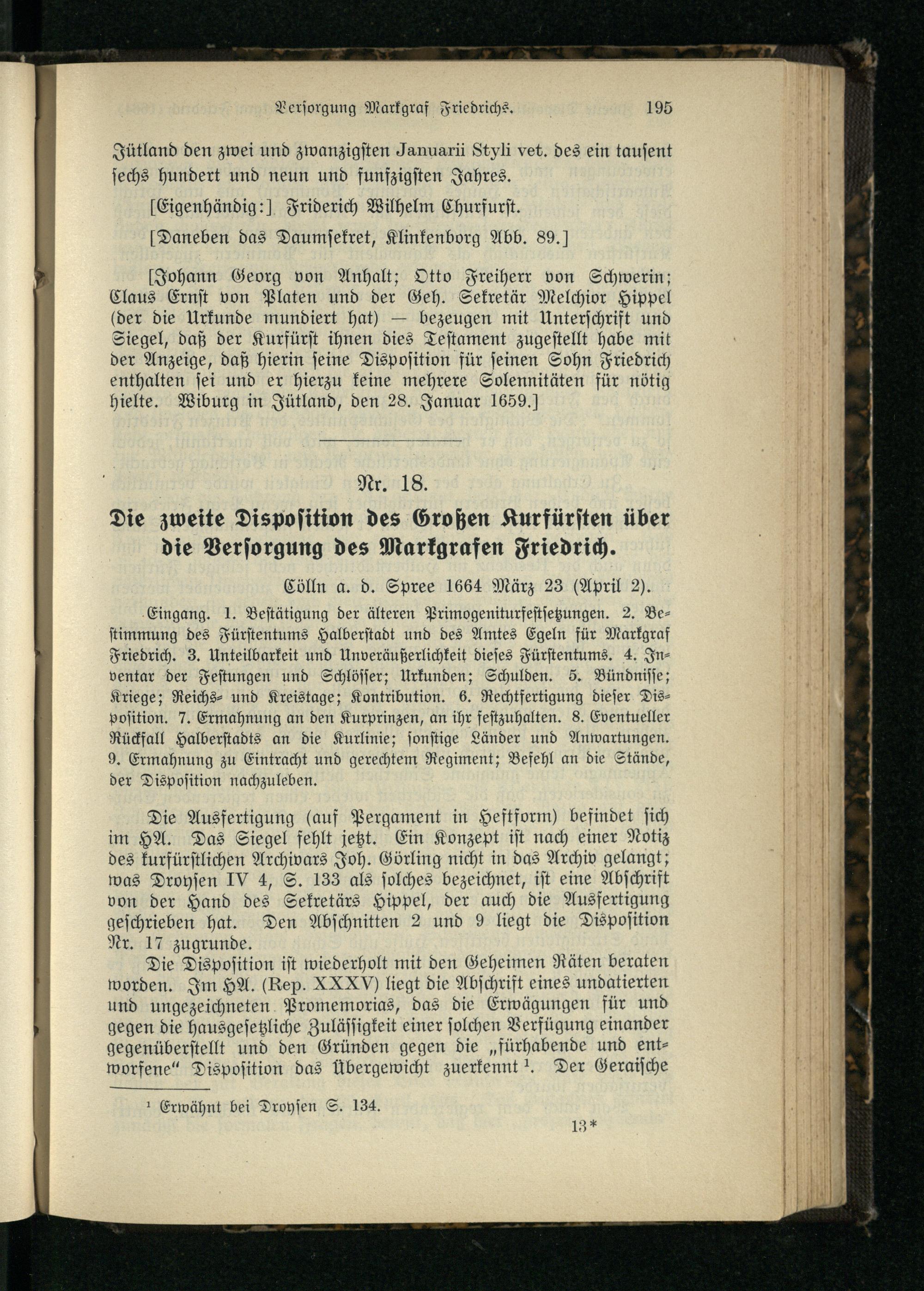 Nr. 18. Die zweite Disposition des Großen Kurfürsten über die Versorgung des Markgrafen...