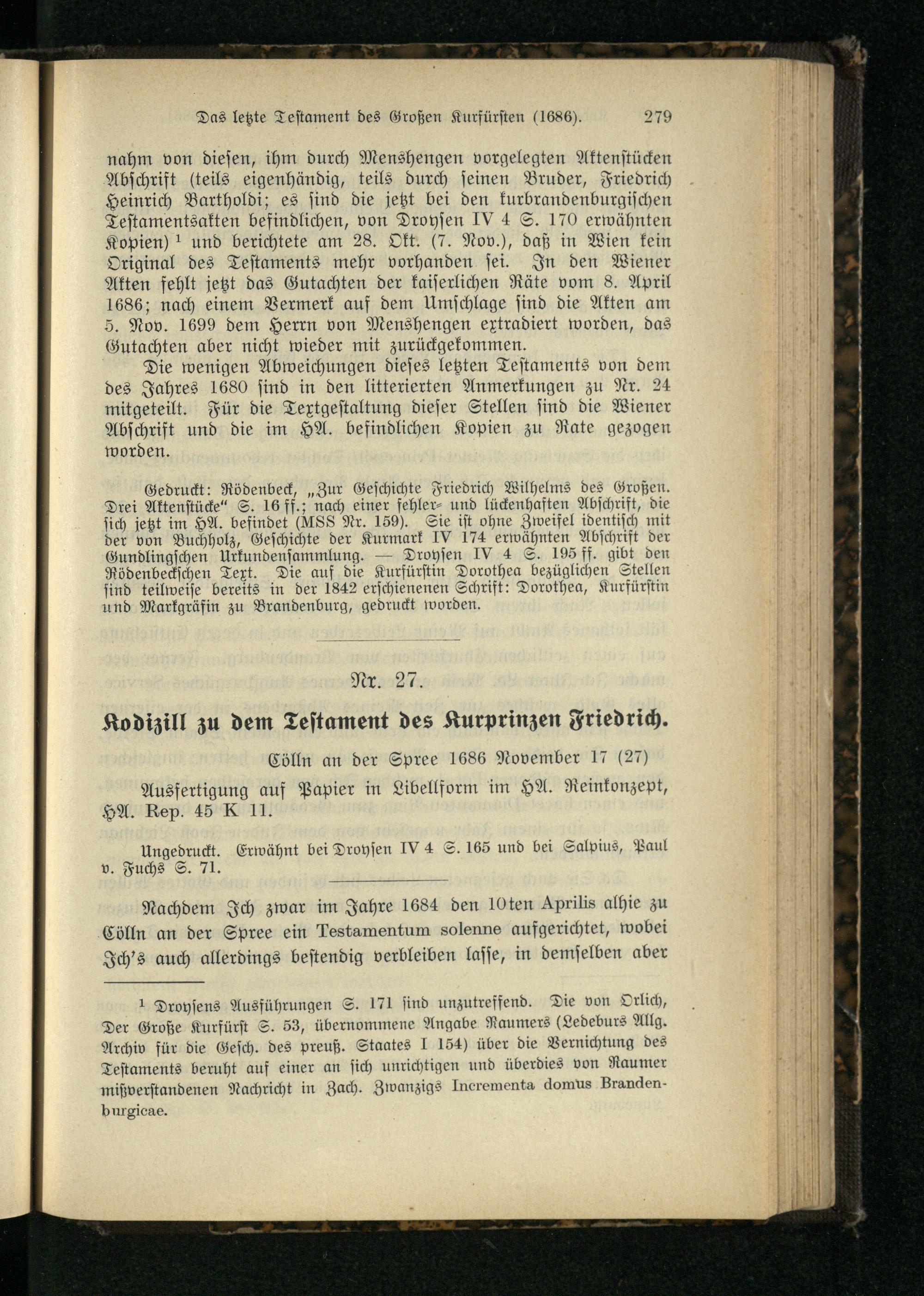 Nr. 27. Kodizill zu dem Testament des Kurprinzen Friedrich.