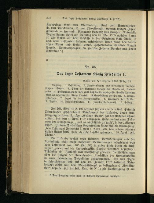 Nr. 36. Das letzte Testament König Friedrichs I.