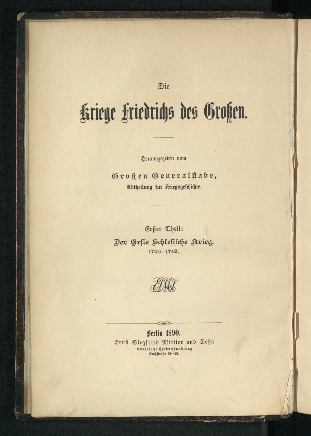 Theil 1, Bd. 1 (1890) Die Besetzung Schlesiens und die Schlacht bei Mollwitz