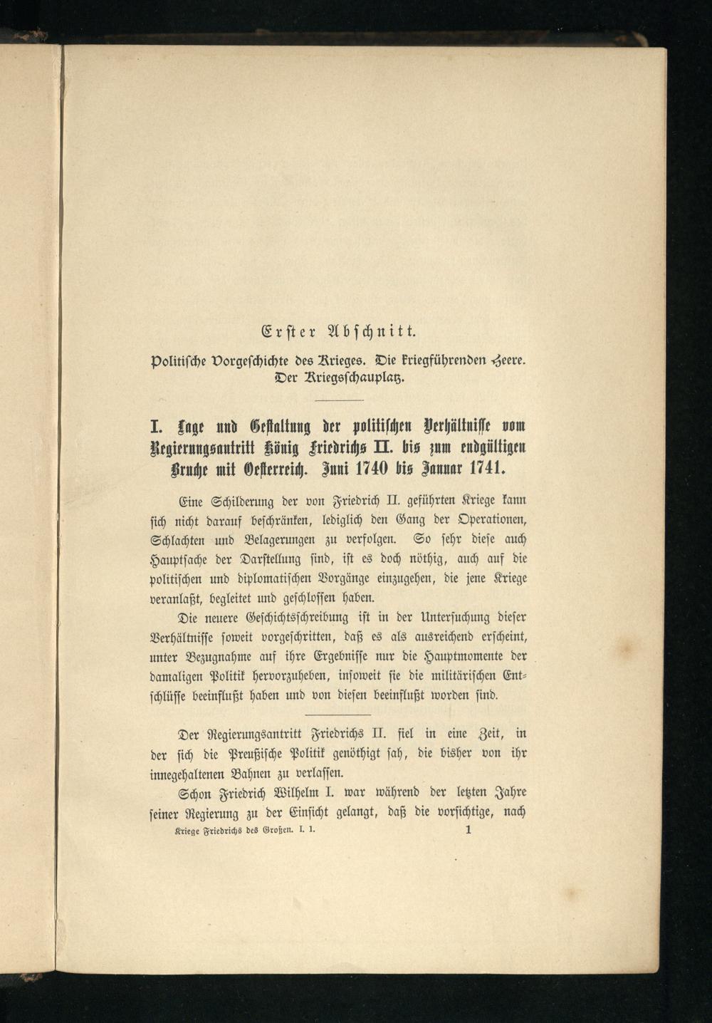 I. Lage und Gestaltung der politischen Verhältnisse vom Regierungsantritt König Friedrichs II. bis zum endgültigen Bruche mit Oesterreich. Juni 1740 bis Januar 1741.