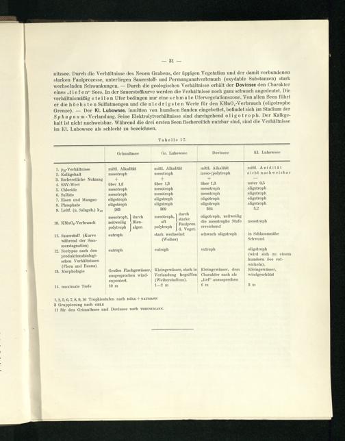 Die Vegetation einiger Seen in der Umgebung von Joachimsthal in der Uckermark, Kr. Angermünde. (Grimnitzsee, großer Lubowsee, Dovinsee, kleiner Lubowsee.) : mit 95 Tabellen / von Willi Panknin