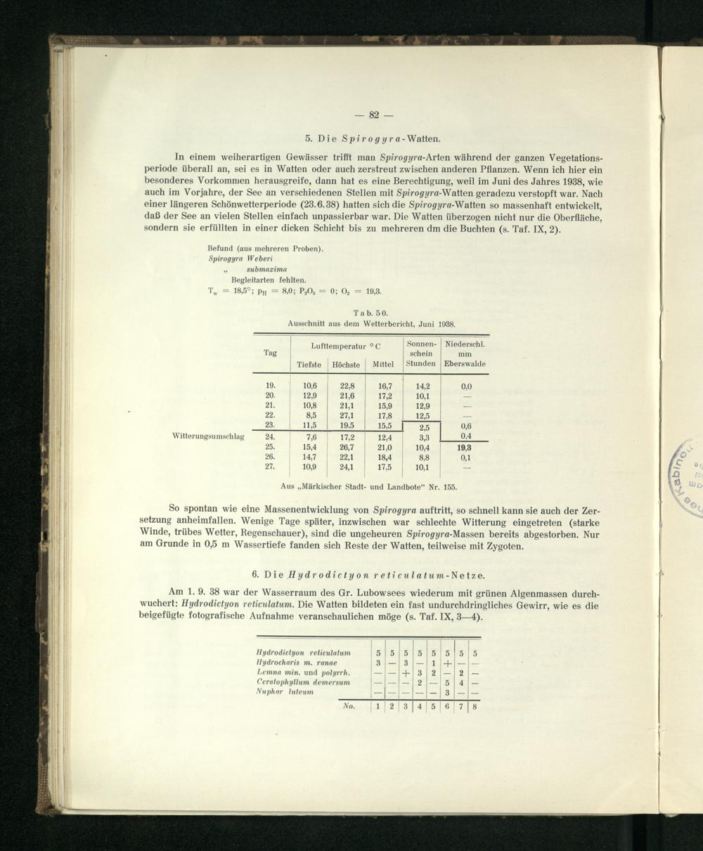 Die Vegetation einiger Seen in der Umgebung von Joachimsthal in der Uckermark, Kr. Angermünde. (Grimnitzsee, großer Lubowsee, Dovinsee, kleiner Lubowsee.) : mit 95 Tabellen / von Willi Panknin