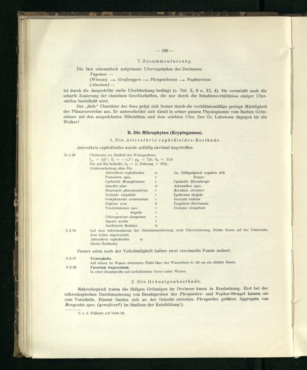 Die Vegetation einiger Seen in der Umgebung von Joachimsthal in der Uckermark, Kr. Angermünde. (Grimnitzsee, großer Lubowsee, Dovinsee, kleiner Lubowsee.) : mit 95 Tabellen / von Willi Panknin