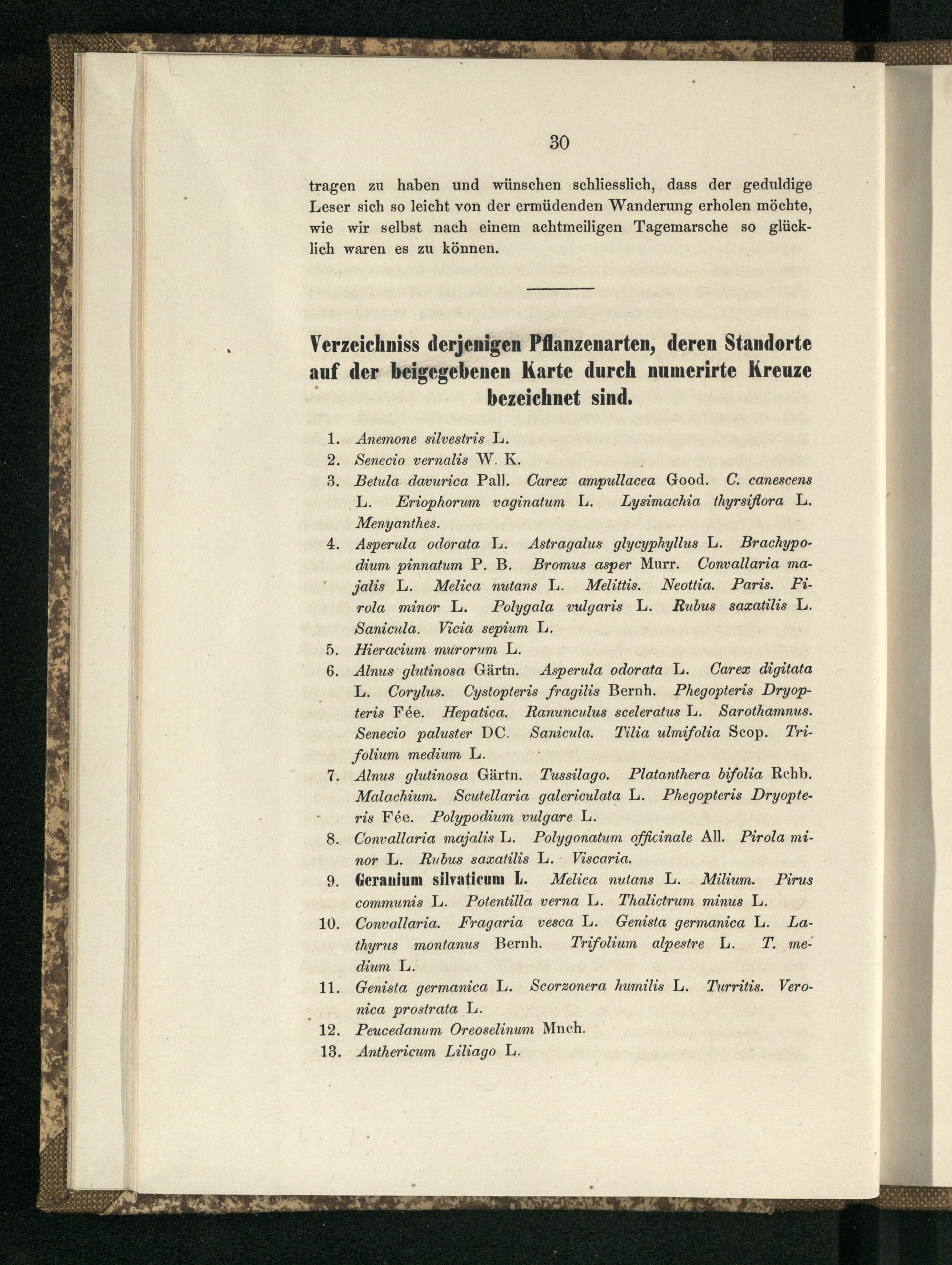 Verzeichniss derjenigen Pflanzenarten, deren Standorte auf der beigegebenen Karte durch numerirte Kreuze bezeichnet sind.