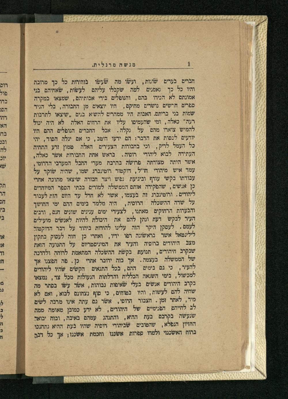 Dor ha-haśkalah be-Rusyah : (peʿulot ha-memshalah be-haśkalat ha-Yehudim) : ḥaḳirah hisṭorit / me-et Menasheh Margalit ; targum Y.-Sh.דור ההשכלה ברוסיה : (פעולות הממשלה בהשכלה היהודים) : חקירה היסטורית / מאת מנשה מרגלית ; תרגום י־ש
