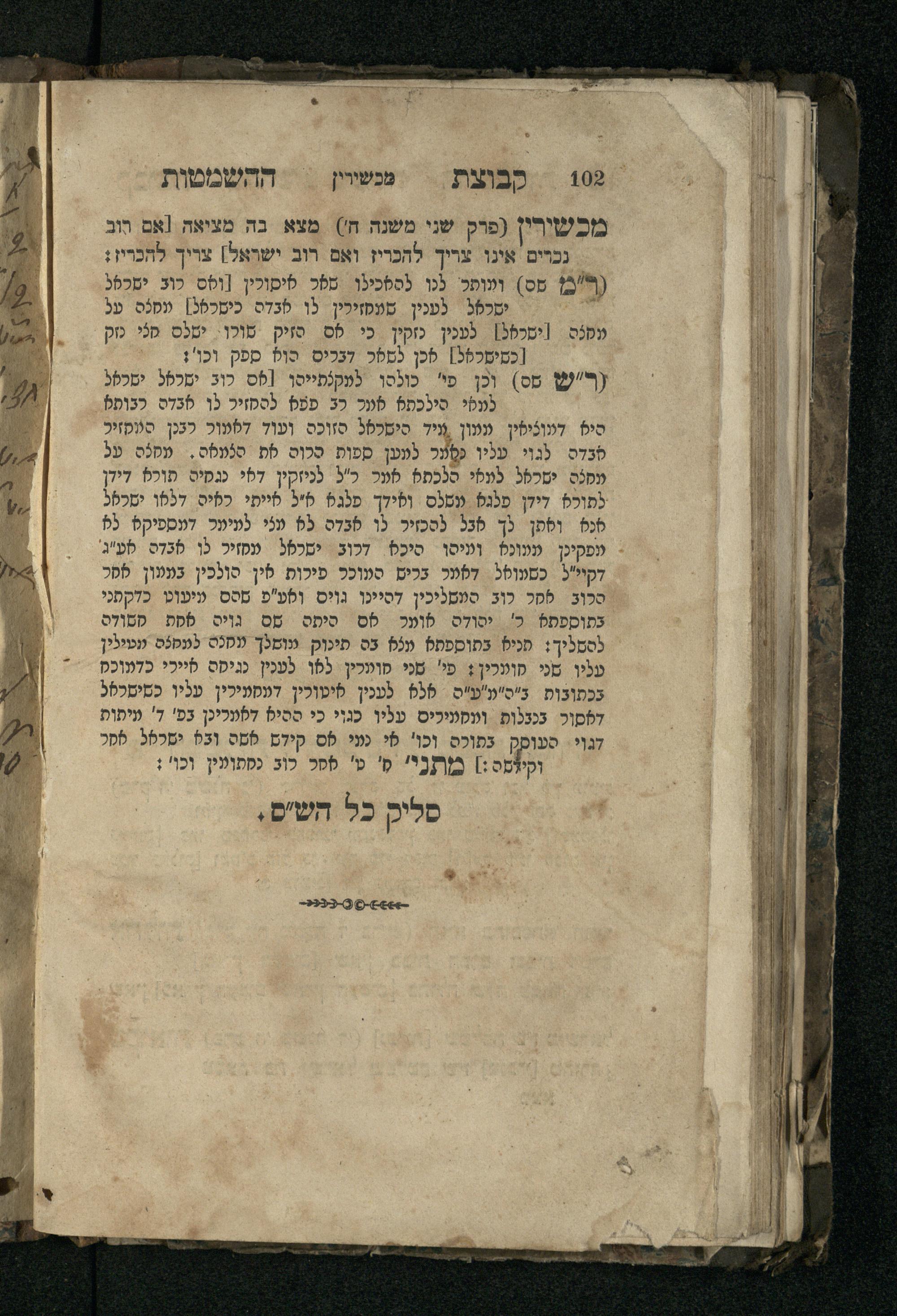 Ḳevutsat ha-hashmaṭot : kolel kol ha-devarim ha-ḥaserim be-Talmud Bavli ṿe-Rashi ṿe-Tosafot ṿe-Rosh ṿe-hag.A. [ṿe-hagahot Asheri] u-fe. ha-Mishnayot le-ha-Rambam ; mine az nidpesu ʿEmanuʾel Bombaśti[?] be-Amśṭerdam shenat 410 li-f.ḳ ... / niḳbetsu u-neʾesfu ʿal yede ish nevon daʿat ...קבוצת ההשמטות : כולל כל הדברים החסרים בתלמוד בבלי ורש״י ותוספות ורא״ש והגʺא [והגהות אשרי] ופי׳ המשניות להרמב״ם, מני אז נדפסו ע״י עמנואל באמבשתי[!] באמשטרדם שנת ה״א ת״ד לפ״ק ... / נקבצו ונאספו על ידי איש נבון דעת ...