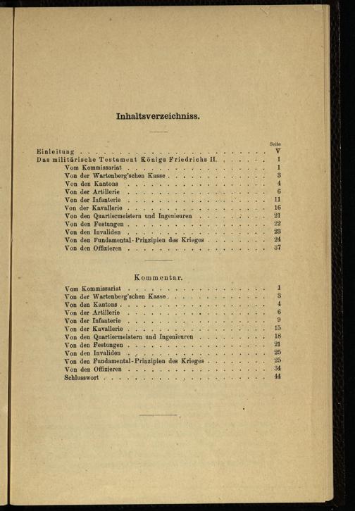 Das militärische Testament Friedrichs des Grossen / hrsg. und erl. von A. von Taysen