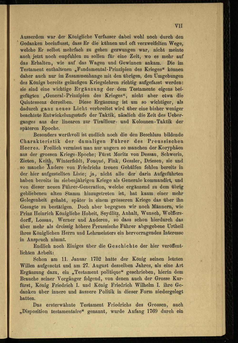 Das militärische Testament Friedrichs des Grossen