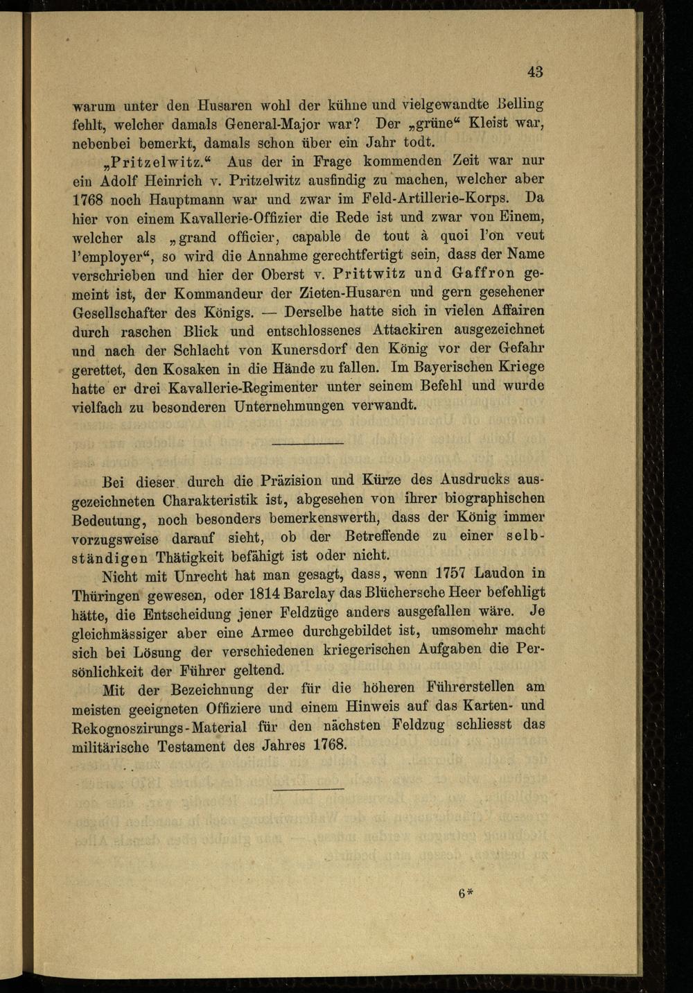 Das militärische Testament Friedrichs des Grossen