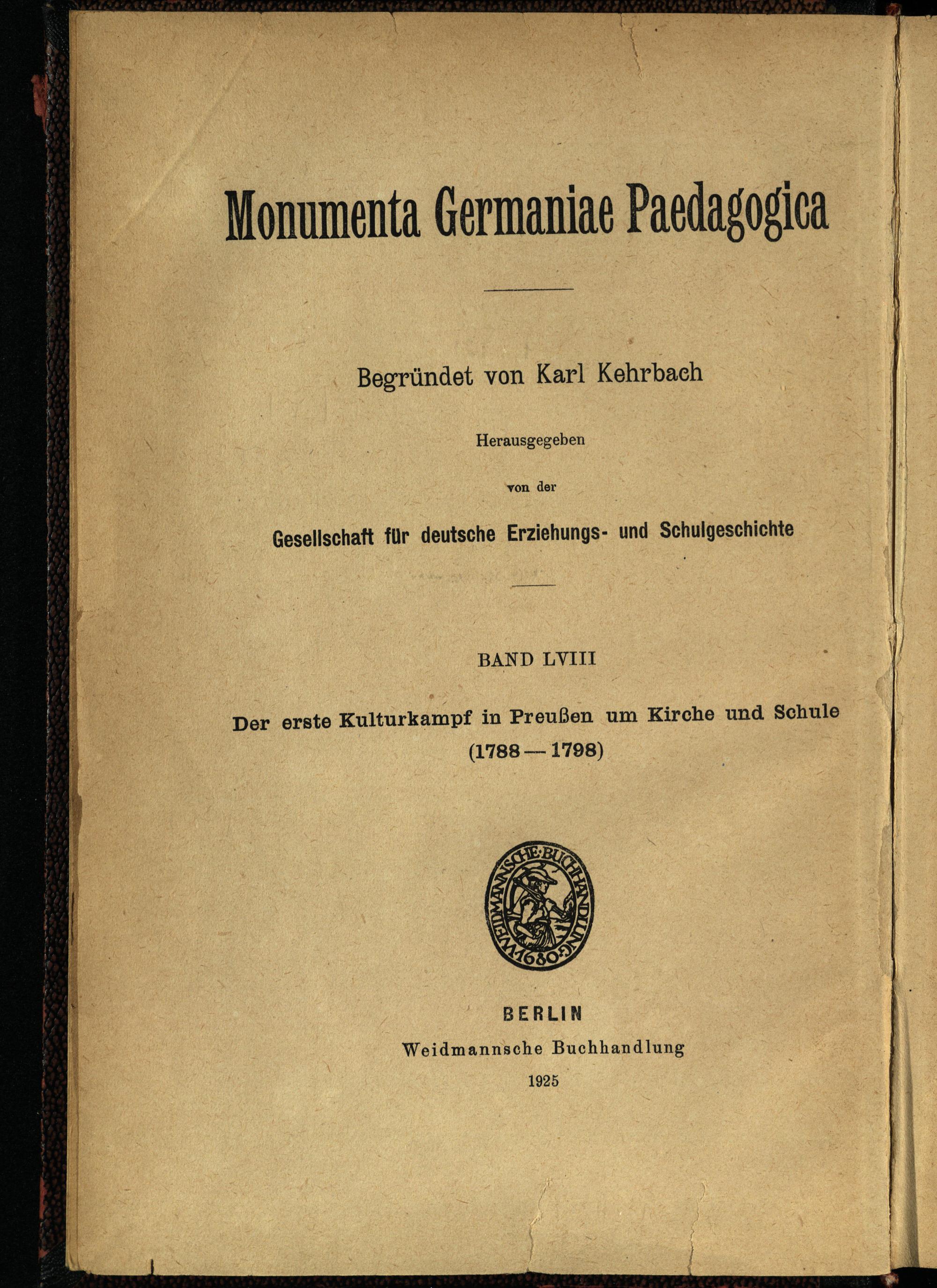Der erste Kulturkampf in Preußen um Kirche und Schule : (1788 - 1798) / von Paul Schwartz