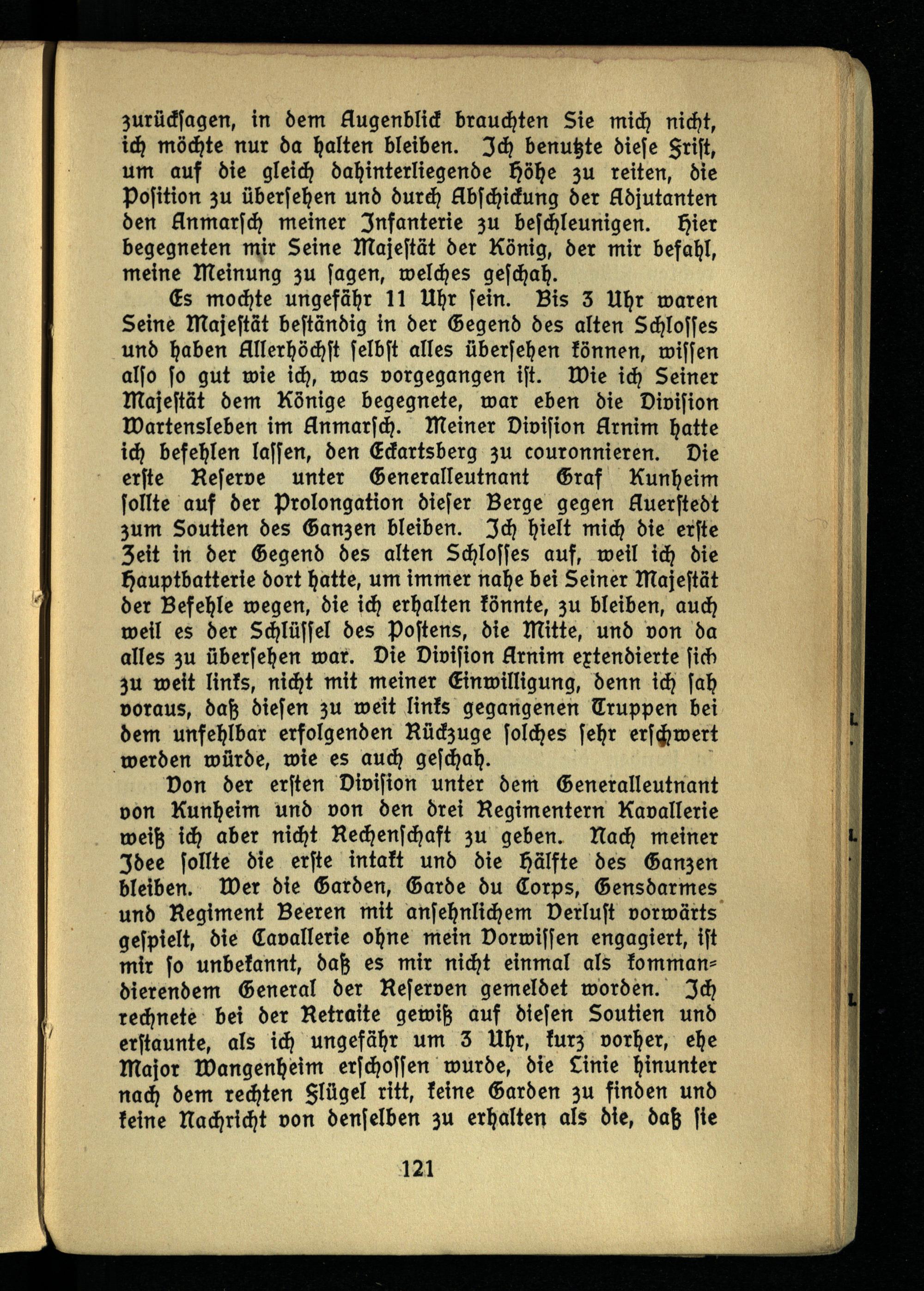 f) Bericht des Generals der Kavallerie Grafen v. Kalckreuth.