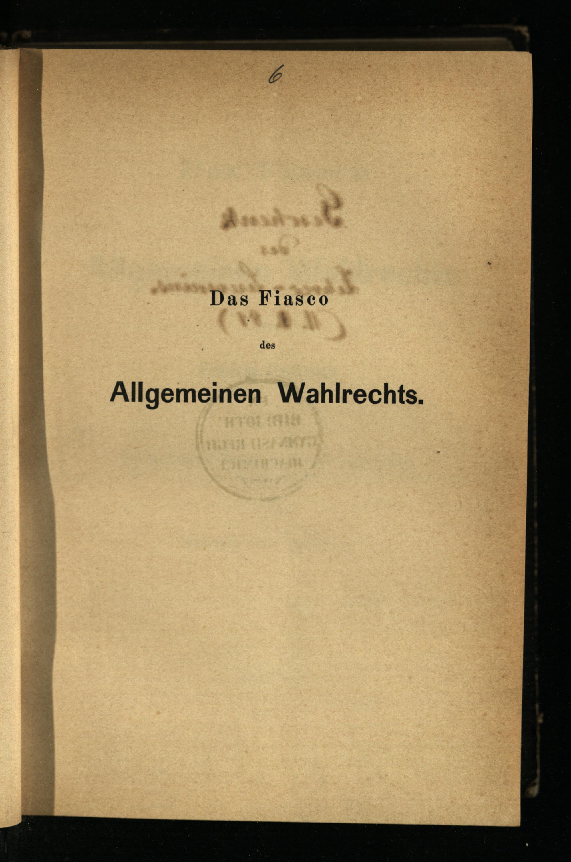 Das Fiasco des Allgemeinen Wahlrechts / von Francis Parkman. Aus dem Engl. übers. und m. e. Vorr. vers. von George von Chauvin