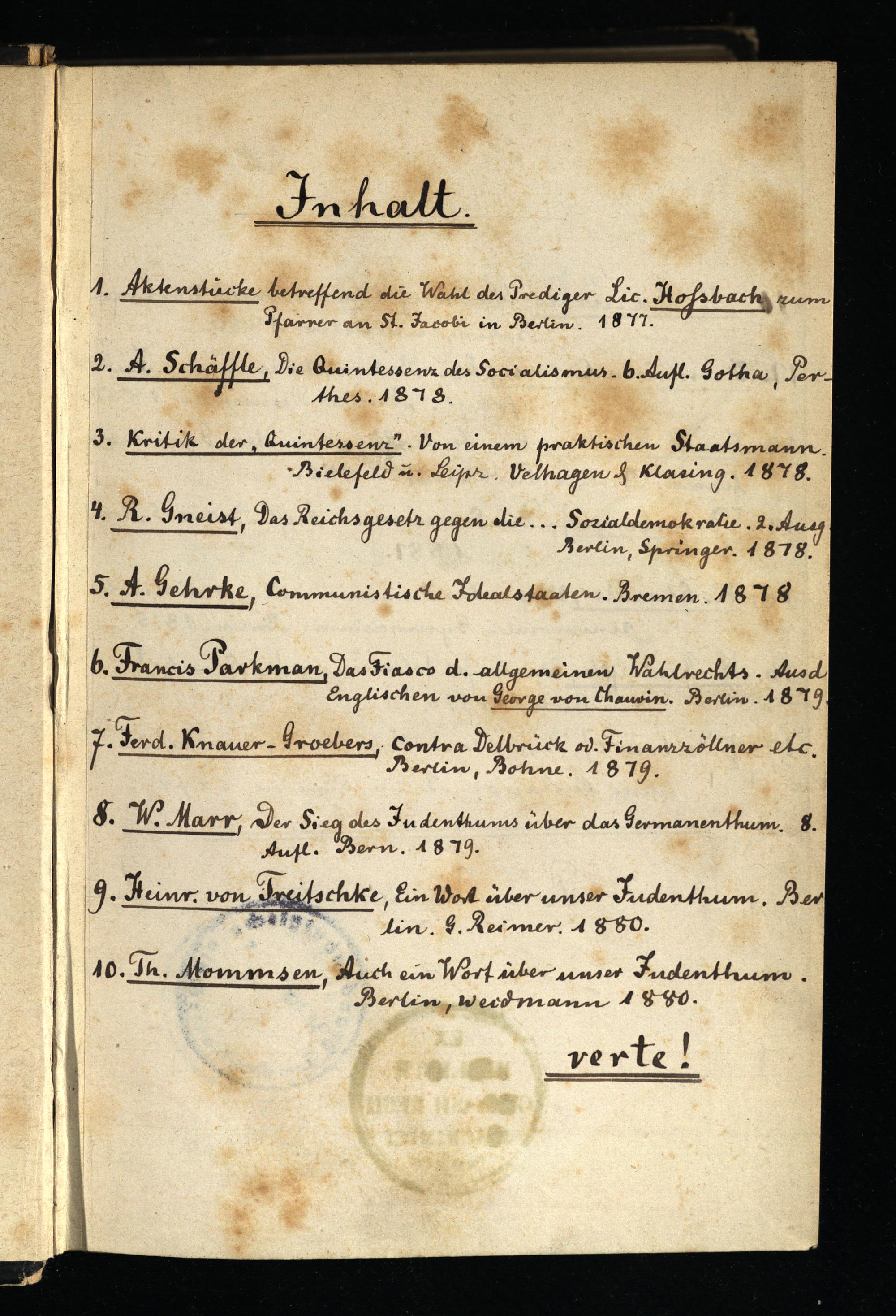 Aktenstücke betreffend die Wahl des Predigers Lic. Hoßbach