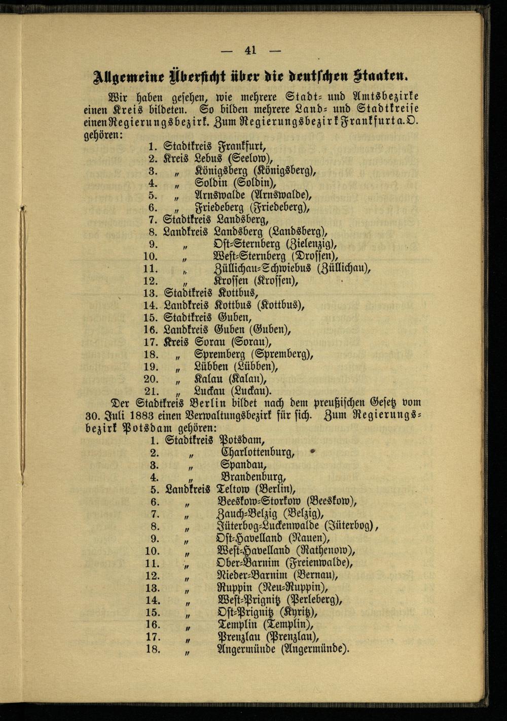 XII. Anhang: Stadtkreis Frankfurt a.O. und Allgemeine Übersicht über die deutschen Staaten