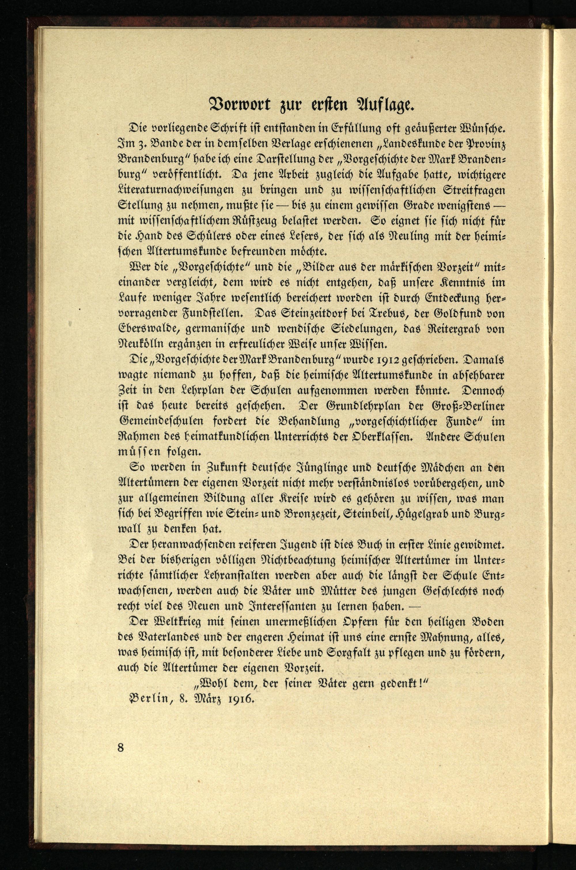 Bilder aus der märkischen Vorzeit : für Freunde der heimischen Altertumskunde, insbesondere für die Jugend und ihrer Lehrer / von Albert Kiekebusch