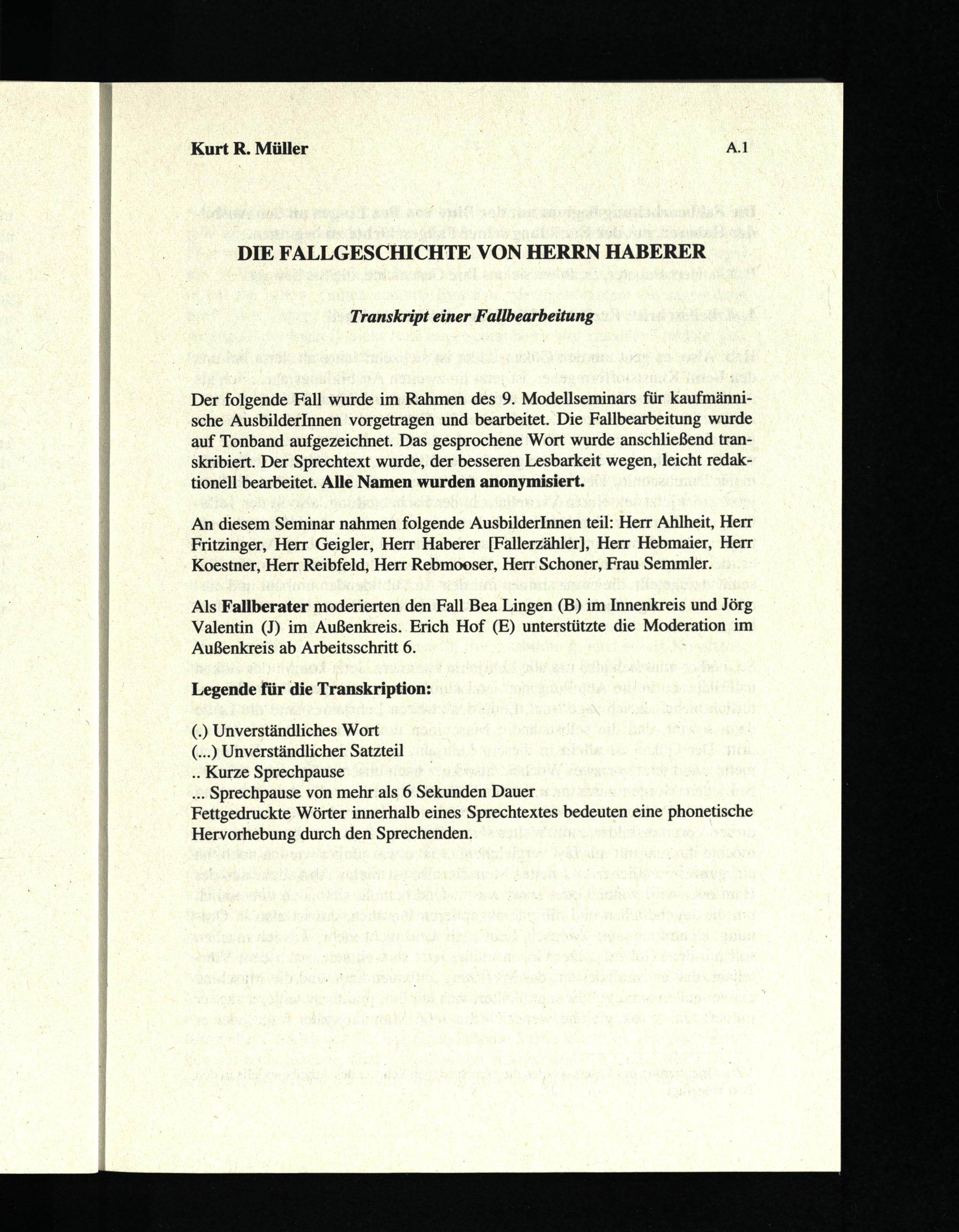 A.1 Müller, K.R.: Die Fallgeschichte von Herrn Haberer - Transkript einer Fallbearbeitung