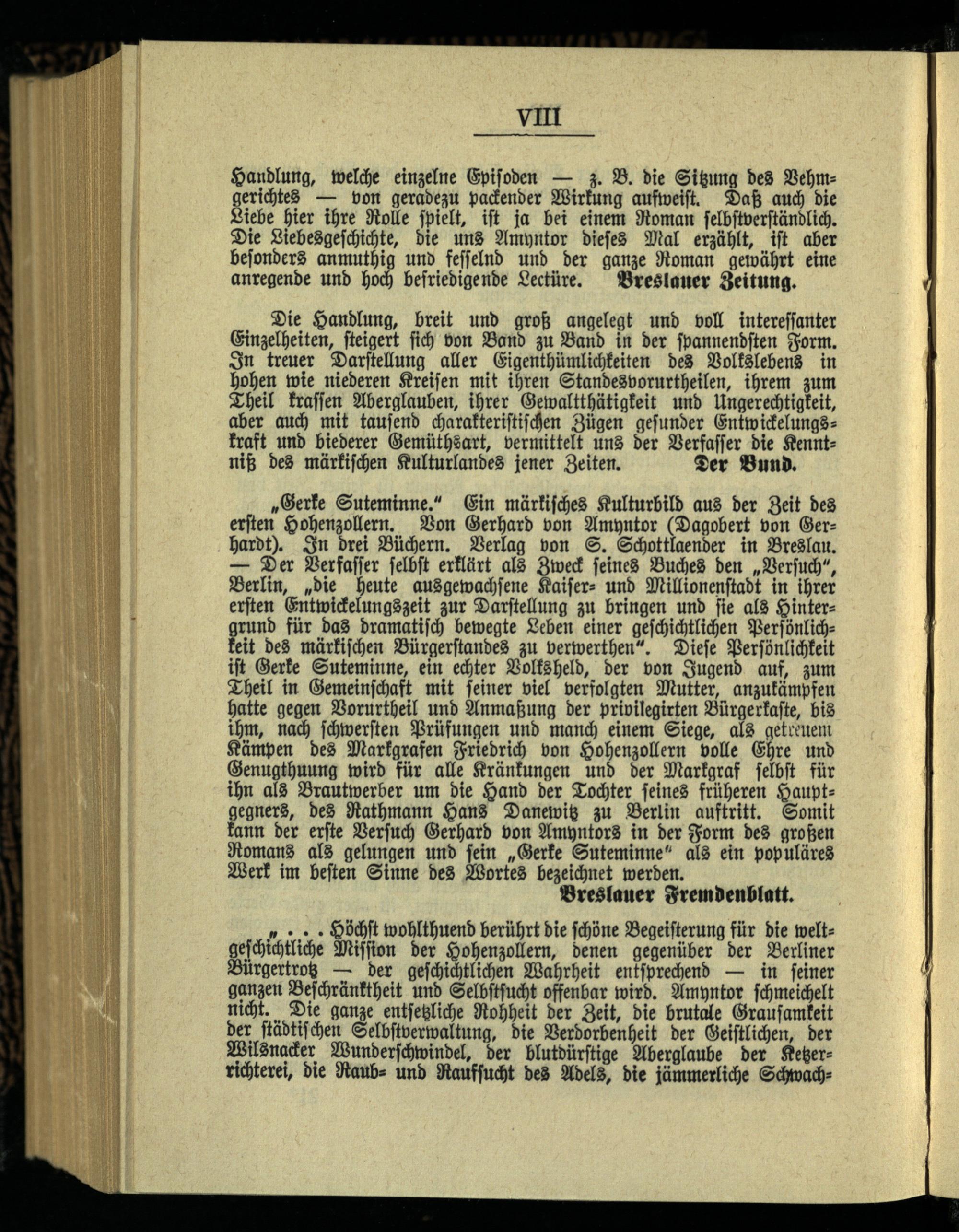 Gerke Suteminne : ein märkisches Kulturbild aus der Zeit des ersten Hohenzollern : in drei Büchern / von Gerhard von Amyntor