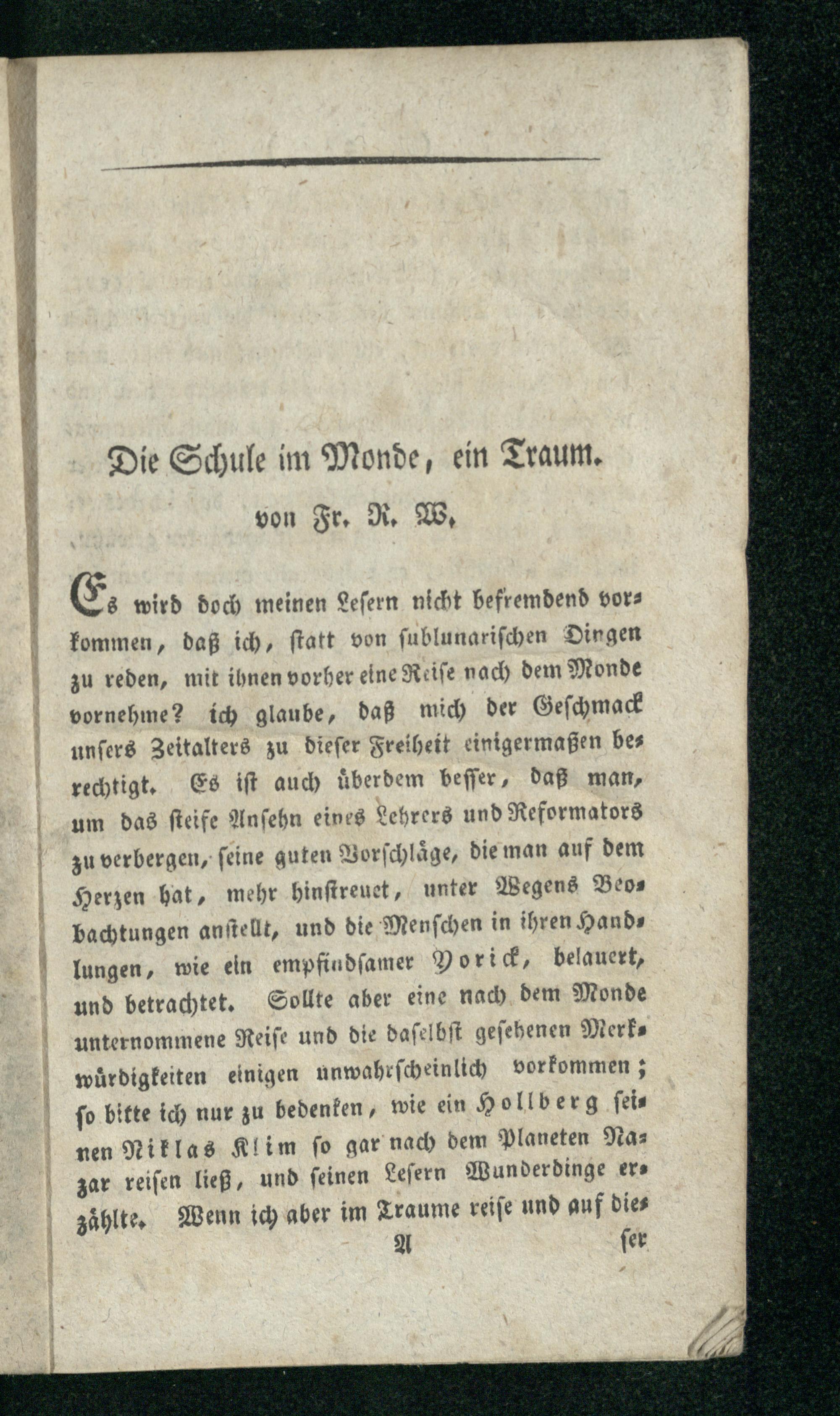 Die Schule im Monde, ein Traum. Von Fr. R. W.